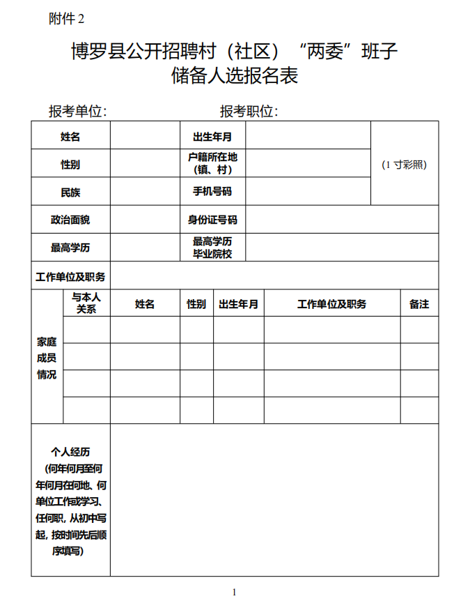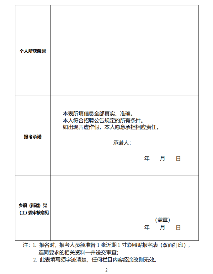 2.中文博彩平台公开招聘村(社区)“两委”班子储备人选报名表