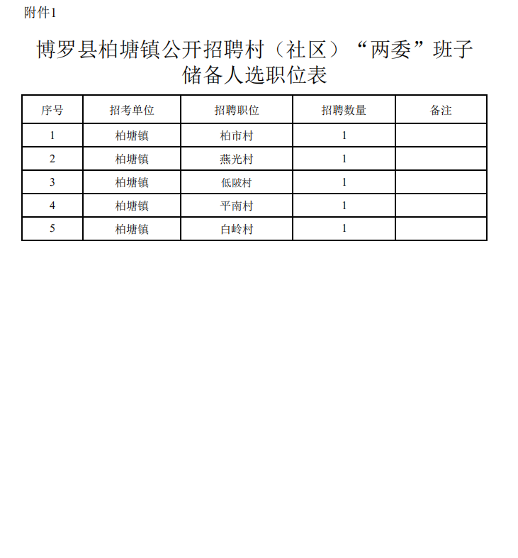 1.中文博彩平台柏塘镇公开招聘第三批村(社区)“两委”班子储备人选职位表