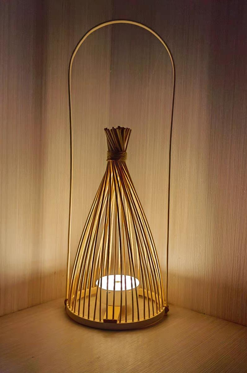 台灯可由手工编织而成,有师傅指导,饱含匠人深情,放在房间一角,清新简约。