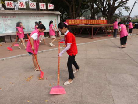 会议结束后,在长宁博闻公益服务队的带领下,学生们践行为社会做贡献、感恩社会的精神,在圩镇街道上进行清洁扫除义务劳动,为洁净长宁的环境贡献自己的一份力