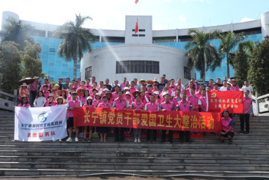 当天下午,在领导班子的带领下,机关党员干部一行约100人,身穿长宁志愿粉红马甲,亮明身份,到圩镇大街小巷中开展卫生清洁。这一天的长宁,街头巷尾到处都呈现出一道道靓丽的风景线。