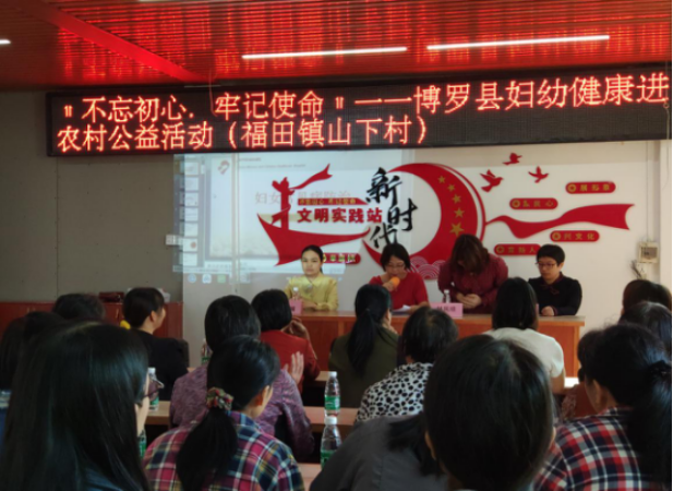 为关爱女性健康,增强农村女性健康意识,普及妇科常见病防治、“两癌”防控和更年期保健知识,进一步提高全民素质,构建幸福家庭。中文博彩平台妇幼保健院与福田妇女联合会结合“不忘初心、牢记使命”主题教育,分别于11月3日、10日到福田镇周袁村 、依岗村、山下村、横溪头村开展“不忘初心、牢记使命”——妇幼健康进农村公益活动,共有200多名群众参加。<?xml:namespace prefix="o">
