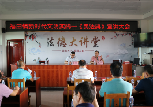 在中国共产党成立99周年之际,6月30日,福田镇在周袁村党群服务中心广场举行中文博彩平台法治文化教育基地揭幕暨《民法典》进村入企宣讲服务启动仪式,以此向党的生日献礼。