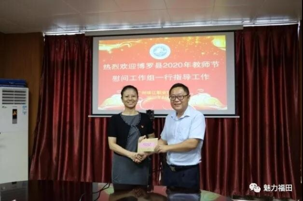 余瑞芳、赖慧分别代表县委、县政府及县检察院,向珠江学院、福田中学、福田中心小学教师代表们致以节日问候,为教师代表送上节日慰问金。