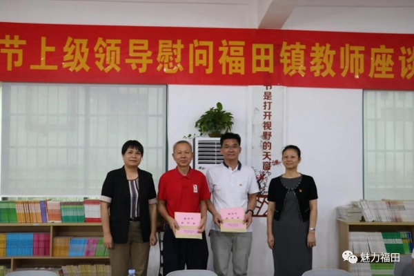 9月8日上午,在第36个教师节即将到来之际,县人大常委会党组书记、主任余瑞芳,县检察院党组书记、检察长赖慧等领导一行到福田镇开展教师节慰问活动。镇党委书记谭文福,党委副书记、镇长李晓敏陪同参加活动。