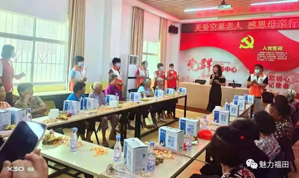 5月8日下午,福田镇志愿者协会联合福田社区综合服务中心开展“关爱空巢老人,感恩母亲行动”。18名空巢老人相聚在福田镇文明实践所,让空巢老人不“空心”。