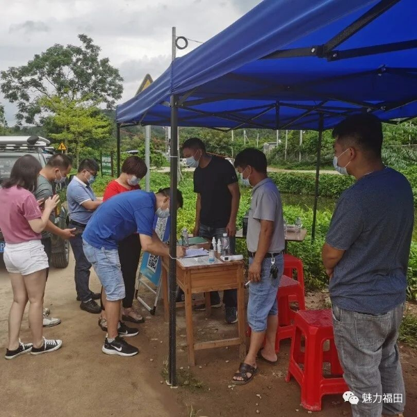 各村(社区)继续加强疫情防控宣传、测温等工作。为加强疫情防控,福田镇在徐田、坳岭、鸡公坑、石巷、杮树吓、道姑田、石坑水库等村或点的风景区入口设立疫情防控监测劝导点,预防群众聚集。