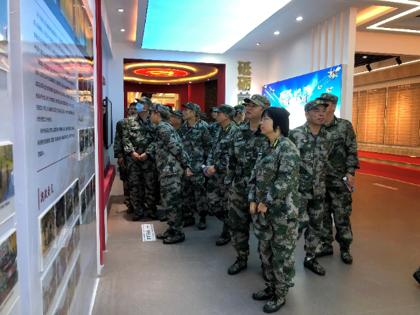 最后,领导干部们身着迷彩服、头戴迷彩帽、脚穿迷彩鞋来到训练基地,并按编队组合整队,现场听取官兵对武器装备的介绍,亲身体验武器枪支实弹射击。