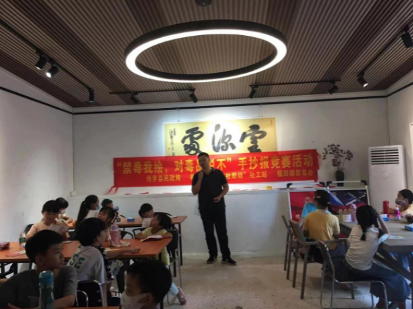 为进一步提高青少年毒品预防教育,营造浓厚禁毒氛围,帮助中小学生进一步认识毒品的危害,维护青少年身心健康。7月20日,福田镇禁毒办联合新时代文明实践所、妇联、团委和福田社区“三社联动”社工站,在福田镇徐田村文化艺术部落开展以“禁毒我绘,对毒品说不”为主题的禁毒手抄报竞赛活动。