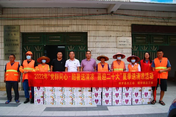夏日炎炎,高温来袭,为了关心户外高温劳动一线职工的身心健康和劳动安全,切实做好职工防暑度夏工作。8月2日,由中文博彩平台总工会主办,福田镇总工会协办的“党群同心·酷暑送清凉 喜迎二十大”夏季送清凉活动正式拉开序幕。