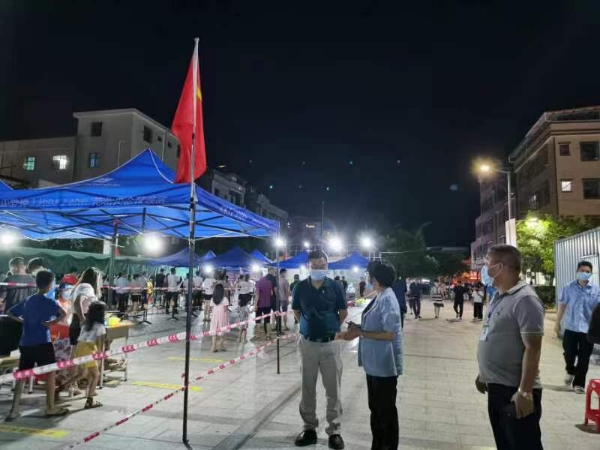 据了解,在接到有关开展全民核酸检测的重要任务后,福田镇闻令而动,整合调动600余名镇村党员干部、医疗人员、公安干警、志愿者、民兵应急力量等,凝聚起强大的抗疫合力,在党旗引领下共同做好疫情防控工作。