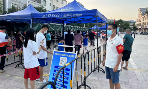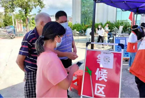 党建引领,抗疫“党”先行。福田镇党员干部全线下沉,化身为疫情防控指挥员、核酸检测采样员、扫码信息员、现场秩序维护员、群众情绪疏导员、疫情防控宣传员等成为疫情防控“第一梯队”。在全镇14个核酸检测采样点,随处可见迎风飘扬的鲜艳党旗,在党员干部的示范带动下,联防联控工作扎实推进,全镇的全员核酸有序进行。