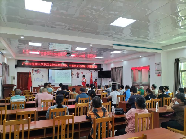 活动现场,广州中医药大学东江古韵志愿服务队的志愿者们首先通过PPT演示为到场群众讲解了阴阳五行学说和脏腑经络理论,目的是为了让大家在日常生活中对中医药文化有一个初步的认识,随后讲解了中医药基础理论和养生保健知识,让群众感受到中医药的优势特色,进一步弘扬中医药文化,推广中医药健康养生理念和方法。