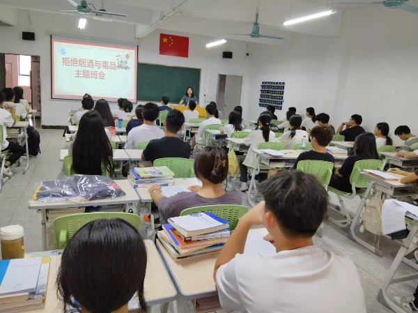为进一步加强学校毒品预防教育工作,增强广大学生的禁毒意识及自觉抵制毒品侵袭的能力,加强防范药物滥用宣传效果2024年10月,惠州市华磐职业技术学校(珠江学院中专部)积极开展“拒绝烟酒与毒品”主题班会。普及烟酒危害的同时科普青少年药物滥用等方面的禁毒知识,为青少年健康成长保驾护航。