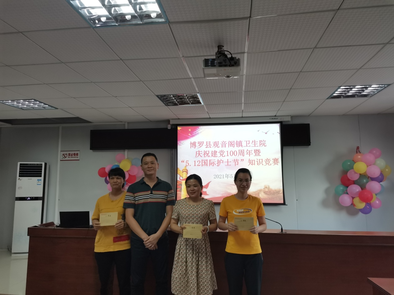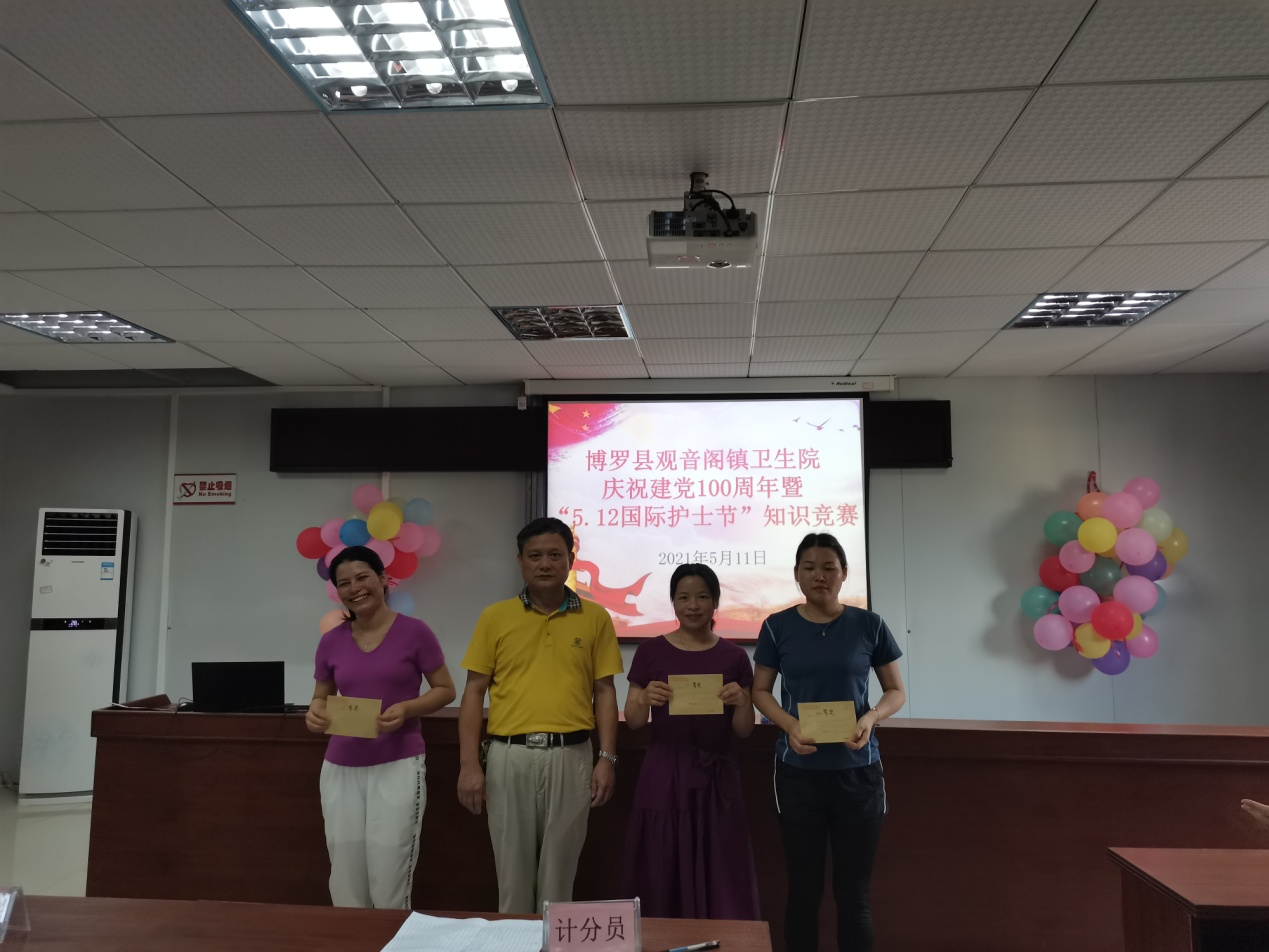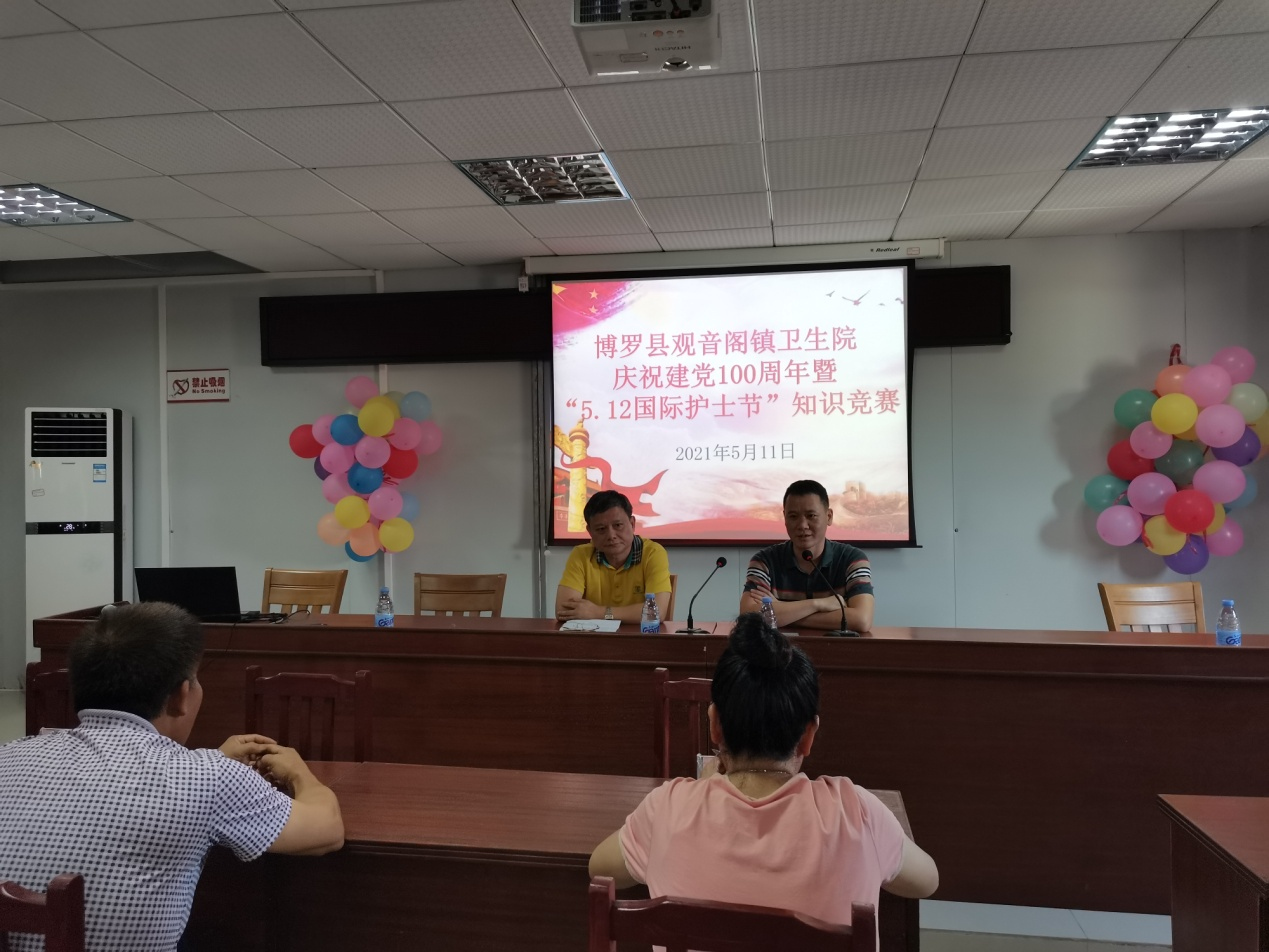 为庆祝中国共产党成立100周年暨第110个“512”国际护士节,深入推进党史学习教育,引导护理人员树立正确的世界观、人生观、价值观,展现卫生院护理人员沿着红色信仰之路,不忘初心、爱岗敬业、务实创新、无私奉献的精神风貌和团结向上的良好氛围,5月11日下午,观音阁镇卫生院开展庆祝建党100周年暨“5.12”国际护士节知识竞赛活动。活动由观音阁镇卫生院院长黄泽源主持,邀请观音阁镇副镇长朱小威参加并致辞,及全院护理人员和在职党员同志共30余人参加活动。