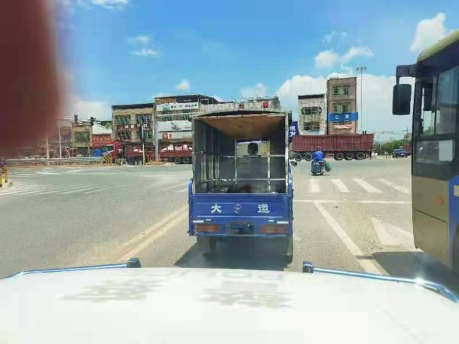 △小孩在车后简易棚内乘坐