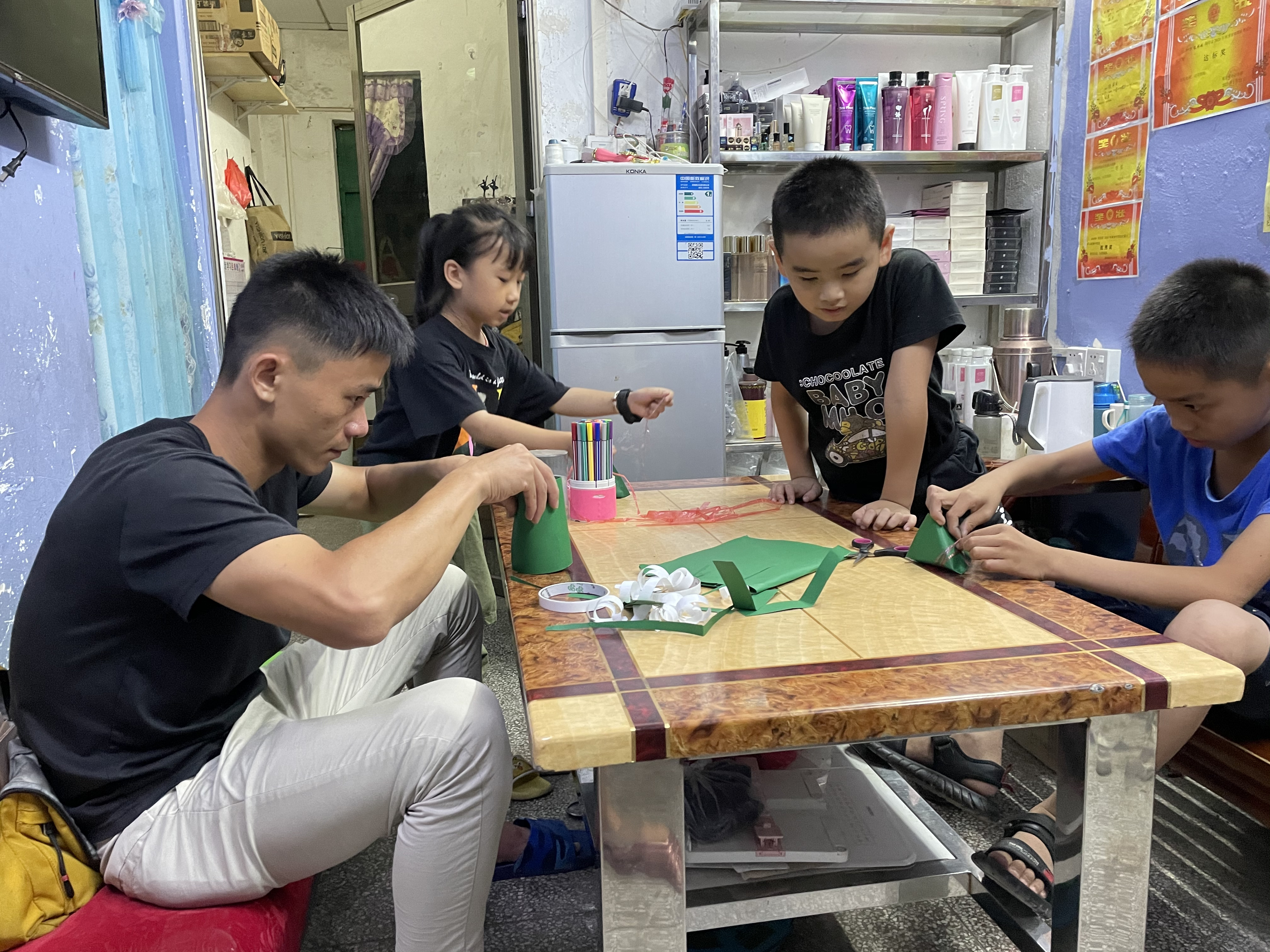 在制作纸粽子的过程中家长们寓教于乐,讲解端午节与粽子的历史文化渊源。纸粽子制作完成以后,家长们上传了制作过程的照片与最后的成果照片,并拍成了小视频。
