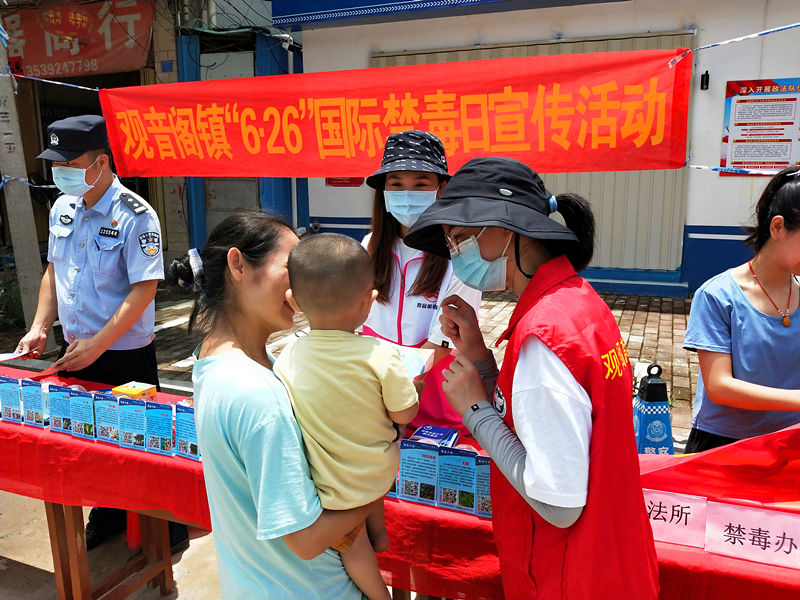 为营造全民参与禁毒的良好氛围,积极推进禁毒宣传纵深发展,6月26日上午,观音阁镇禁毒办联合镇妇联、派出所、司法所等部门集中开展观音阁镇“6.26”国际禁毒日宣传活动。