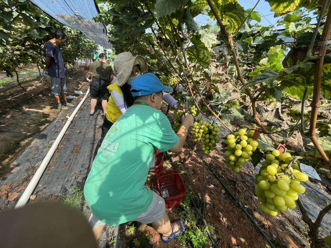 活动中,在社工的指导下,大家穿梭在果园中边采摘边品尝着香甜的葡萄,小心翼翼地把葡萄采摘装进篮子,在挥洒汗水的同时体验着丰收的喜悦和劳动的快乐。