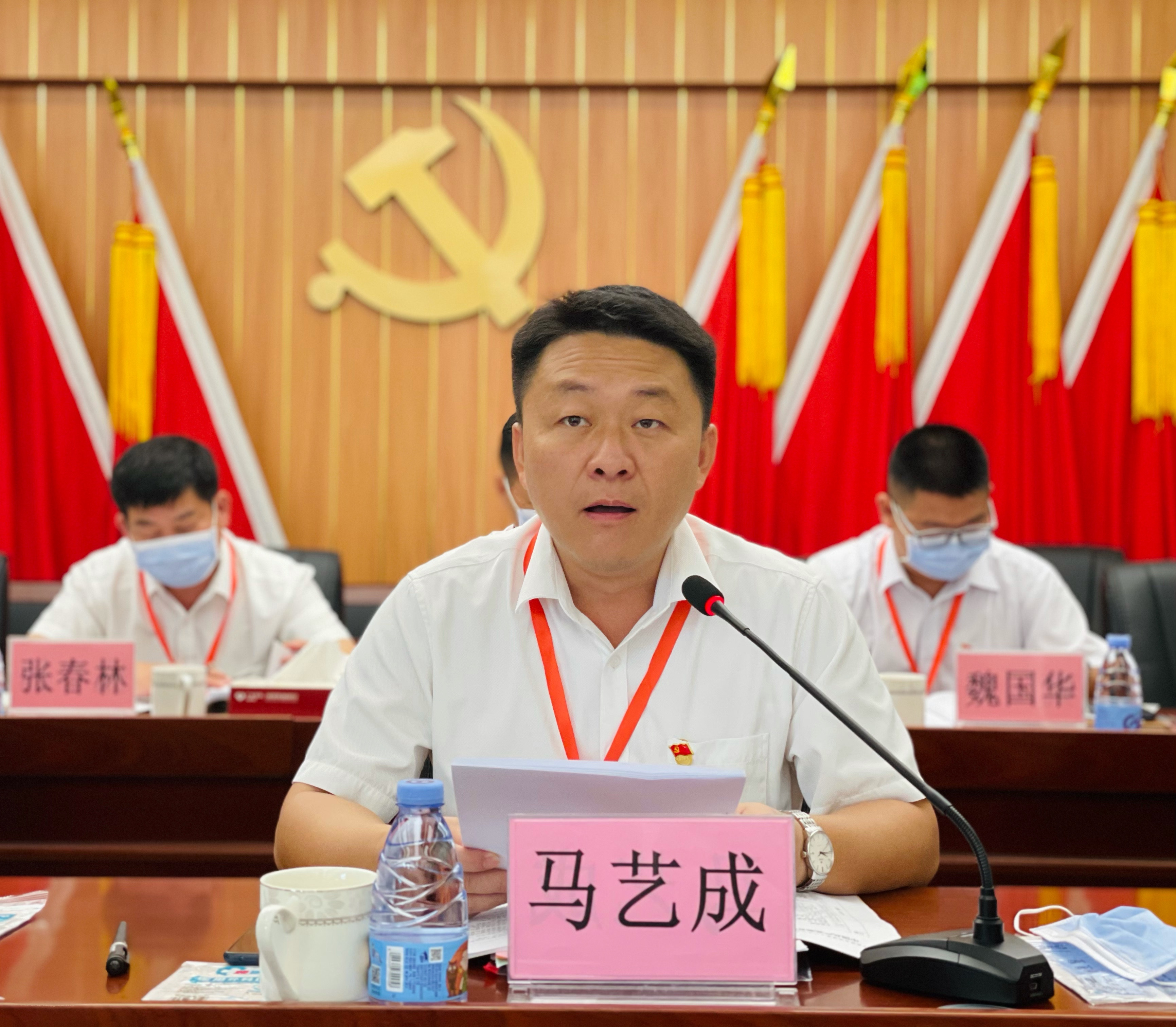▲镇党委书记马艺成向大会作党委工作报告