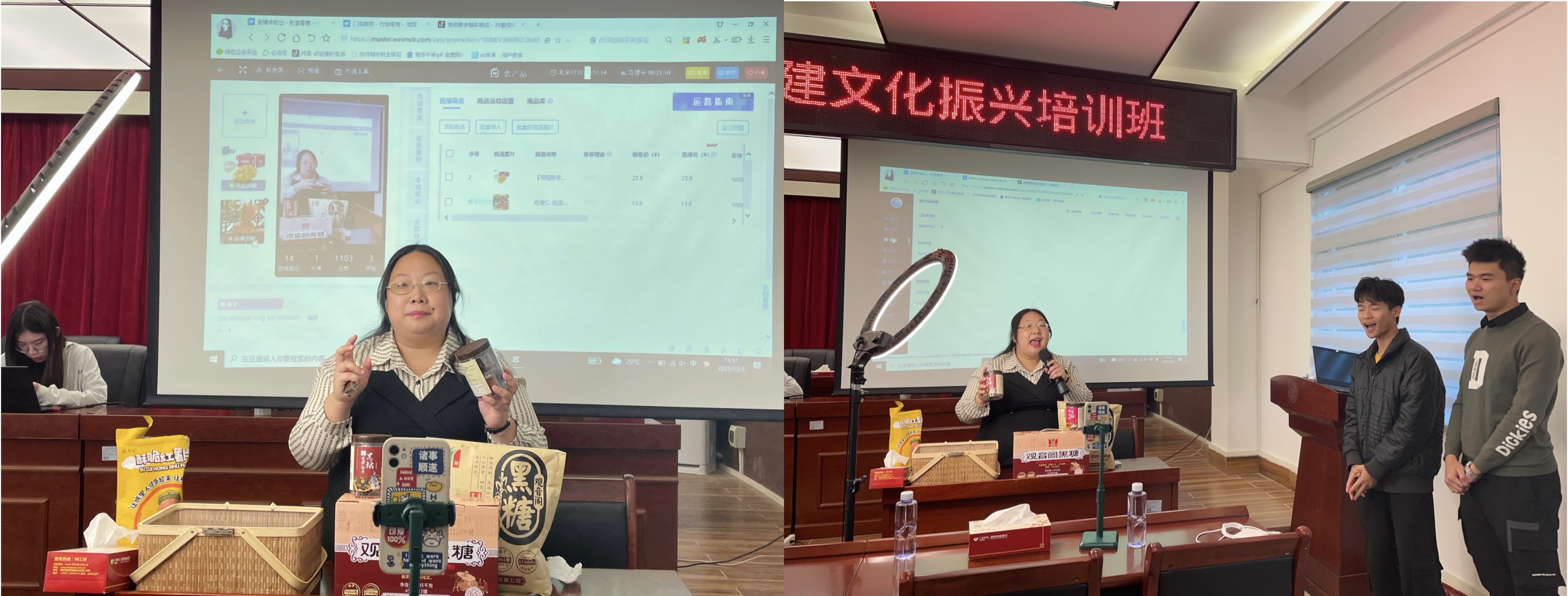 黄洁瑜以农村电商为主题,用接地气的授课方式生动形象的讲授“网络直播”对于农村电商的价值以及短视频运营方法等,建议找准个人定位,认清优势,鼓励大家紧跟时代潮流。