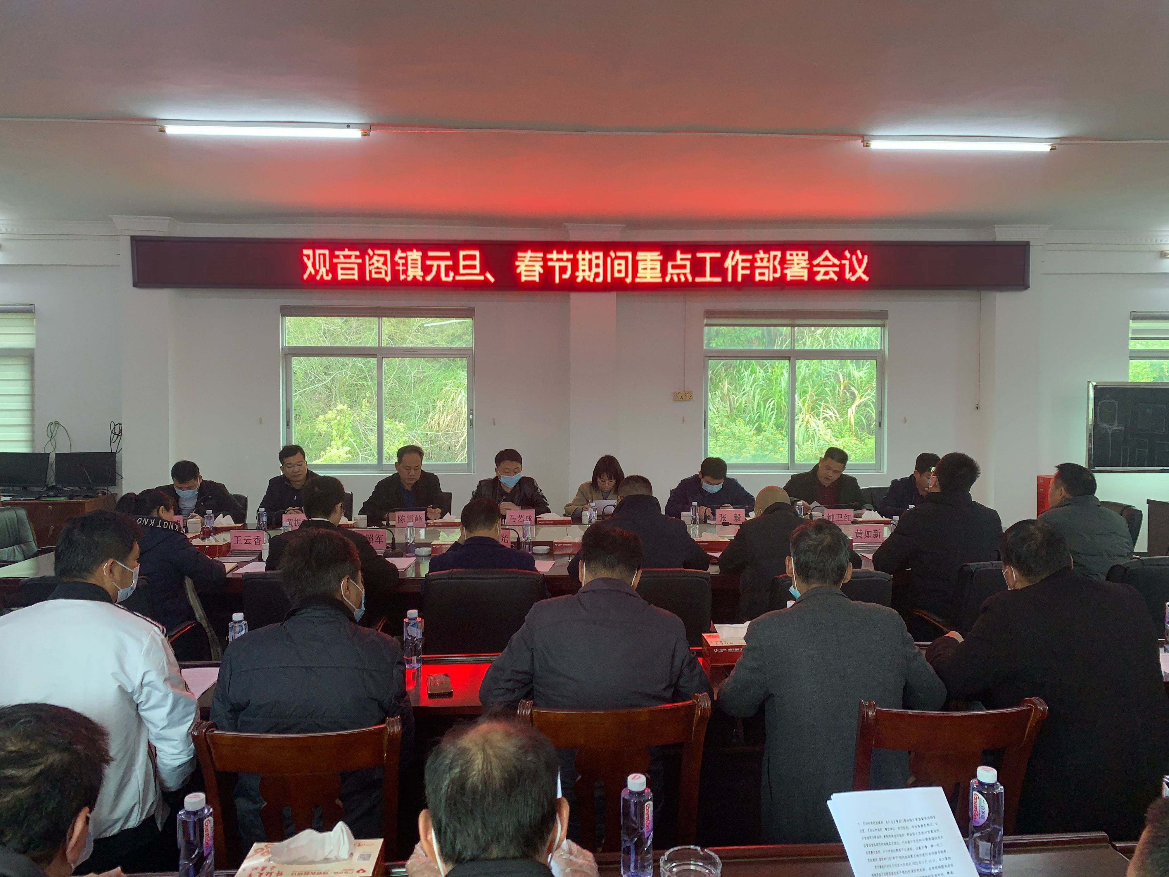 12月27日上午,观音阁镇召开元旦、春节期间重点工作部署会,镇三套班子成员,各部门负责人,县直驻镇单位负责人,各村(社区)书记、主任参加了会议,会议由镇委副书记、镇长梁敏丽主持。
