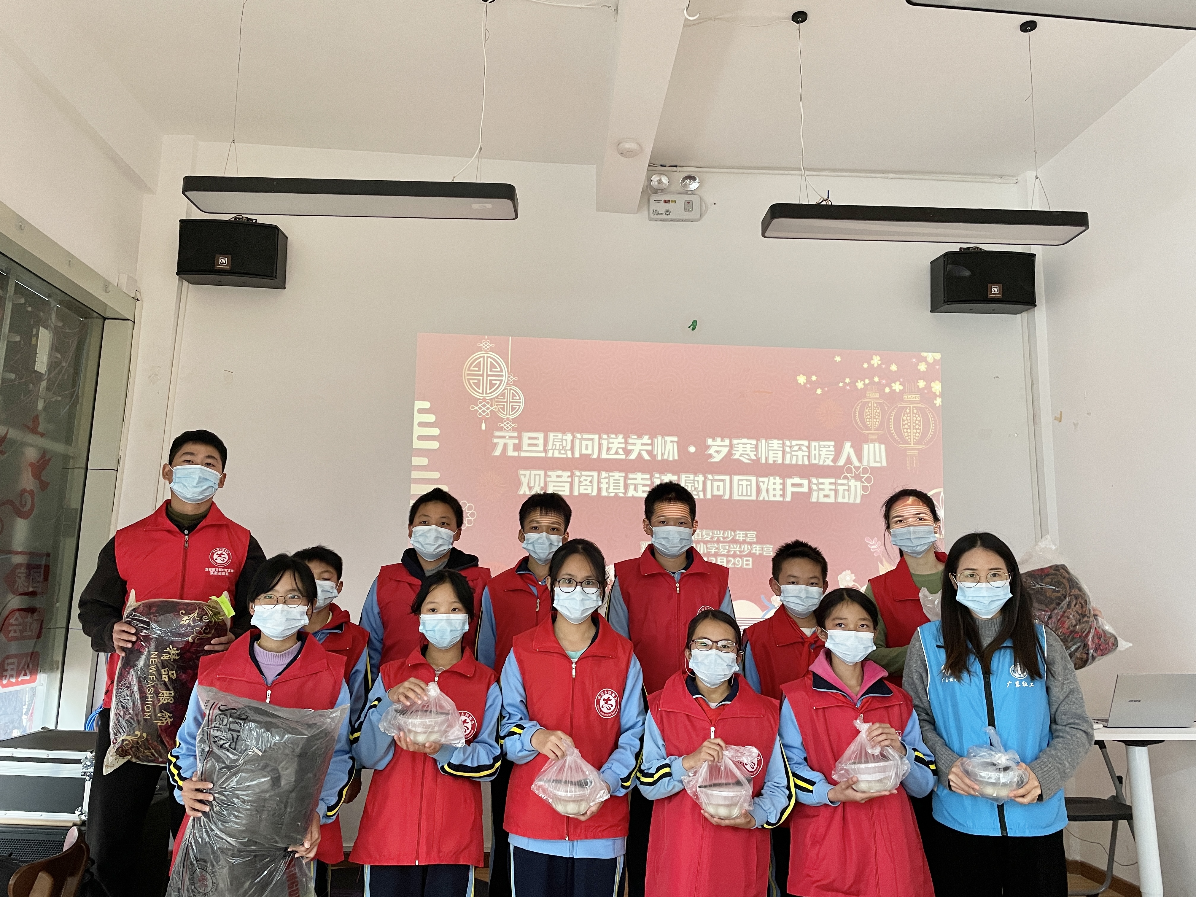 在元旦佳节来临之际,为了让困难群众过上一个祥和喜庆的新年,12月29日下午,观音阁镇新时代文明实践所、复兴少年宫联合观音阁中心小学复兴少年宫、双百社工在社区开展“元旦慰问送关怀•岁寒情深暖人心”走访慰问困难户活动,为困难群众送去了冬日的温暖以及新春的祝福。