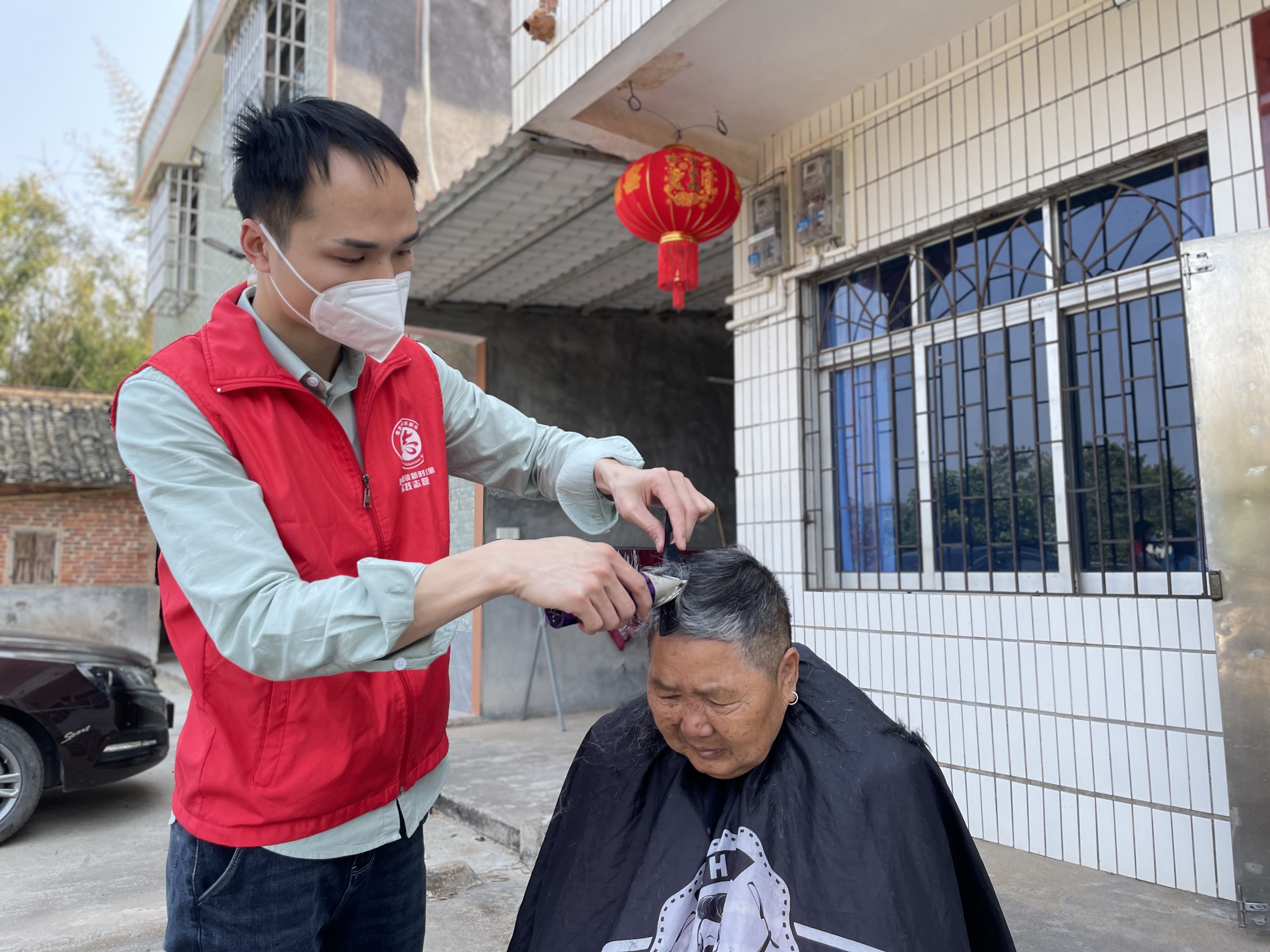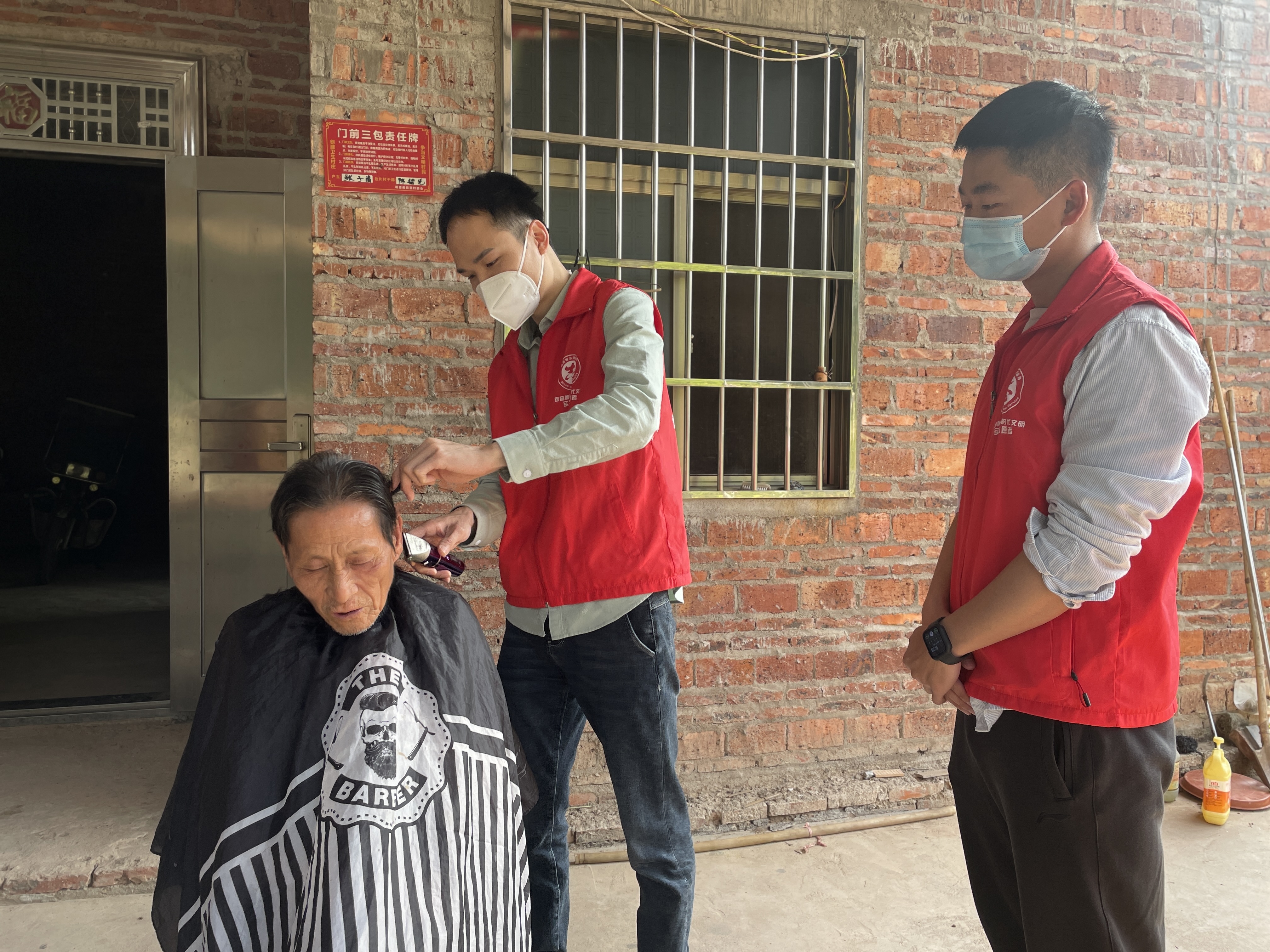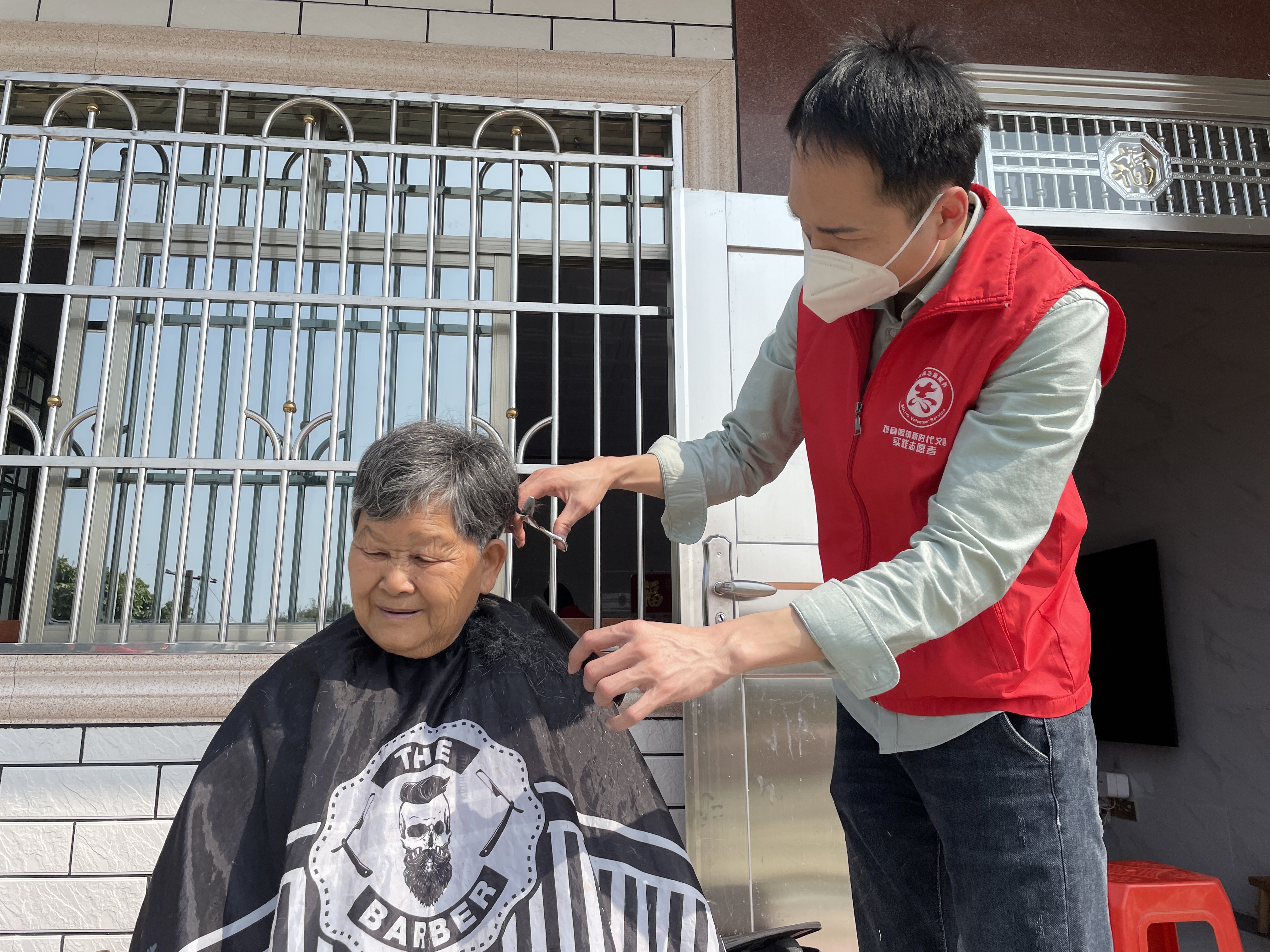 志愿服务队在联星村村干部带领下来到独居和行动不便的老人家中,一张椅子、一条围裙、一把剪刀、一把电动剃、一把梳子,熟练地操作着理发工具,并细心询问老人的喜好,再根据老人提出的要求剪出令他们满意的发型。经过一个上午的忙碌,清爽利落的发型让老人们精神面貌焕然一新,贴心的服务让老人们脸上露出了开心的笑容。
