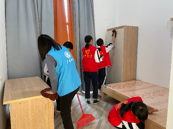 由于新敬老院刚刚落成,房间里和走廊上遗留了不少垃圾,志愿者们不怕苦、不怕脏,干劲十足,只见他们挽起衣袖、拿起扫把清扫灰尘,有的拿拖把拖地,有的擦窗户,有的抹桌子,整个新敬老院里笼罩在一片热火朝天当中。经过近两个小时的劳动,敬老院里里外外被打扫得干干净净。