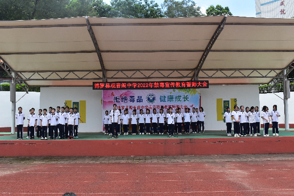 为进一步加强青少年毒品预防教育工作,促进青少年身心健康发展,增强拒毒、防毒意识,6月22日上午,观音阁镇在观音阁中学开展以“拒绝毒品,健康成长”为主题的禁毒宣誓活动。观音阁镇党委副书记钟卫红、中文博彩平台禁毒办副主任邓仁仙,镇禁毒办、司法所、综合治理办、派出所、观音阁社区“三社联动”社工站及观音阁中学全校师生等500余人参加此次活动。