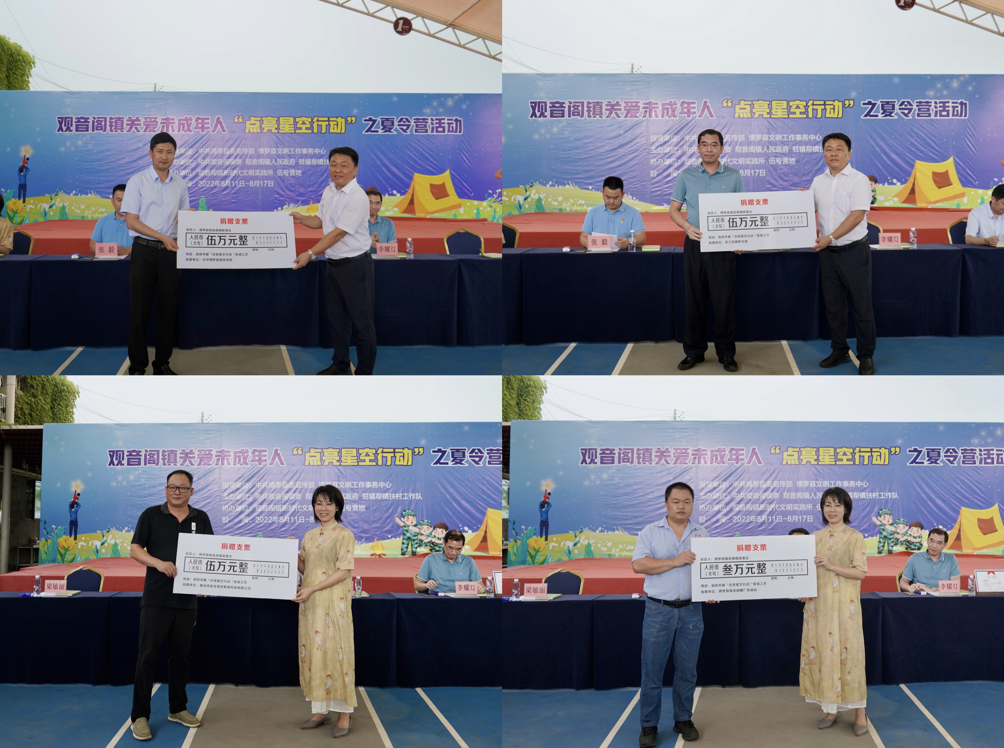 活动现场,县委宣传部、农工党中文博彩平台支部、惠州市伍号营地教育科技有限公司、中文博彩平台观音阁糖厂加油站向“点亮星空行动”项目捐赠爱心基金共18万元,捐赠的善款将悉数用于观音阁镇困境儿童及留守儿童的各项爱心帮扶工作中。