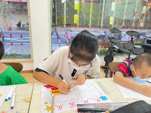 为庆祝中华人民共和国成立73周年,迎接党的二十大胜利召开,加强对孩子的爱国主义教育,培养孩子的设计能力、动手能力,丰富孩子的假期文化生活,10月1日下午,观音阁镇新时代文明实践所、复兴少年宫联合镇妇联、社区“三社联动”社工站在复兴少年宫开展“喜迎二十大· 童心迎国庆”国庆节手抄报活动。