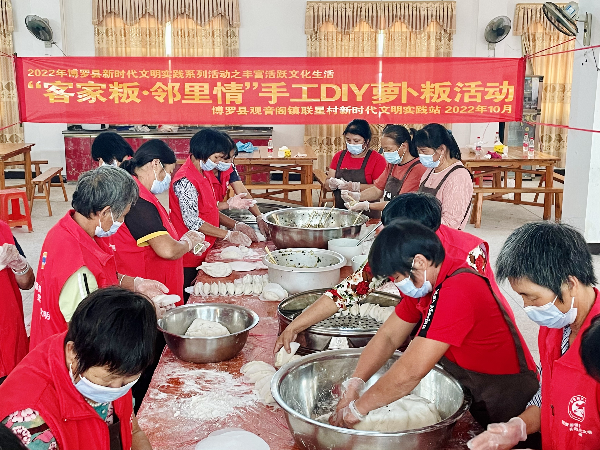 每年农历十月初一又称"十月朝",这一天也标志着冬天的到来,观音阁镇联星村在这一天则有吃萝卜粄的习惯。10月25日上午,观音阁镇联星村在村文化中心开展“客家粄·邻里情”手工DIY萝卜粄活动,邀请村民一起动手制作、品尝萝卜粄,将联星村的“客家粄”文化延续下去。