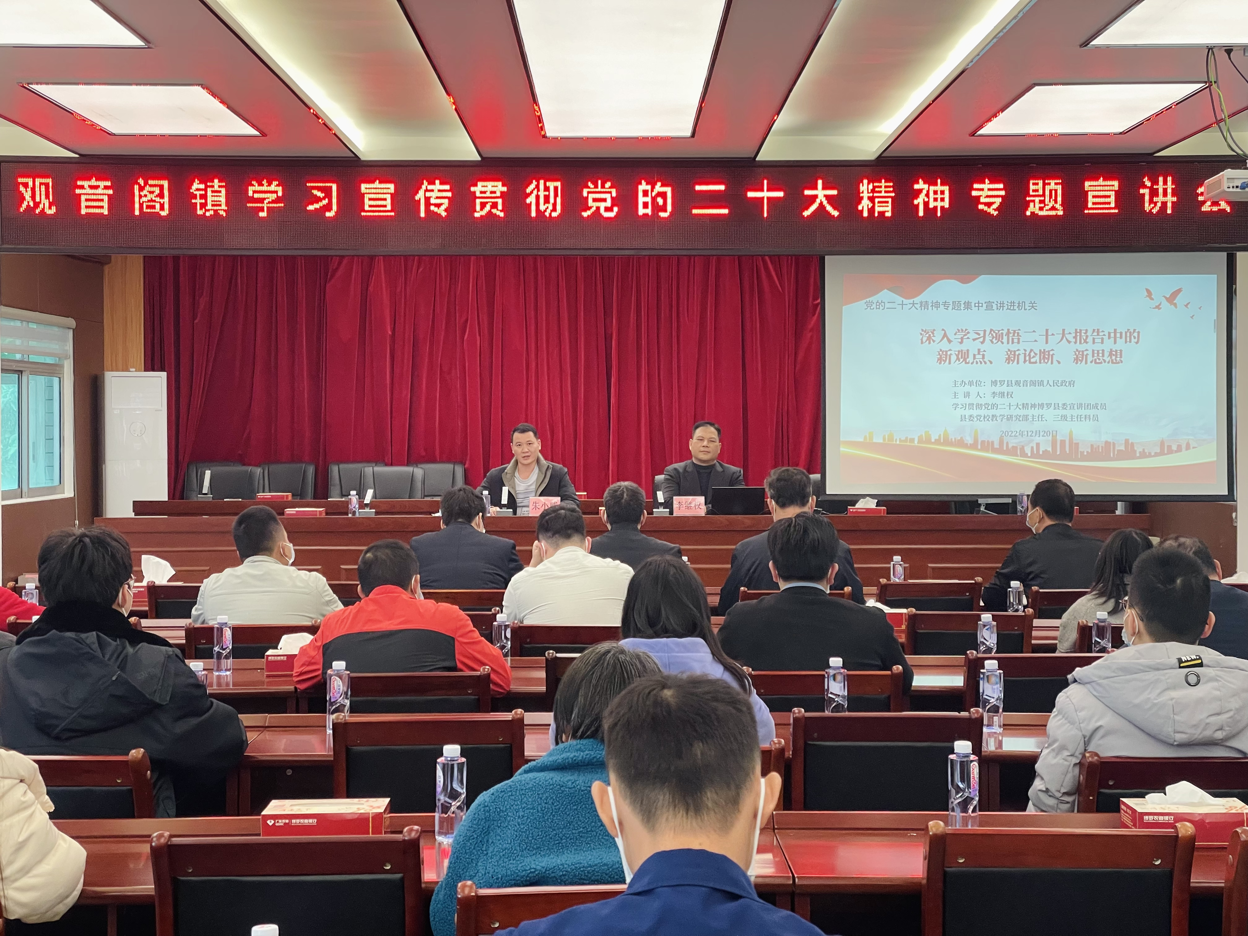 为深入学习贯彻党的二十大精神,及时学习好、宣传好、贯彻好党的二十大精神,12月20日,观音阁镇召开学习宣传贯彻党的二十大精神专题宣讲会,镇三套班子成员、镇政府干部职工及各村(社区)干部代表参加了会议。会议由党委委员朱小威主持。