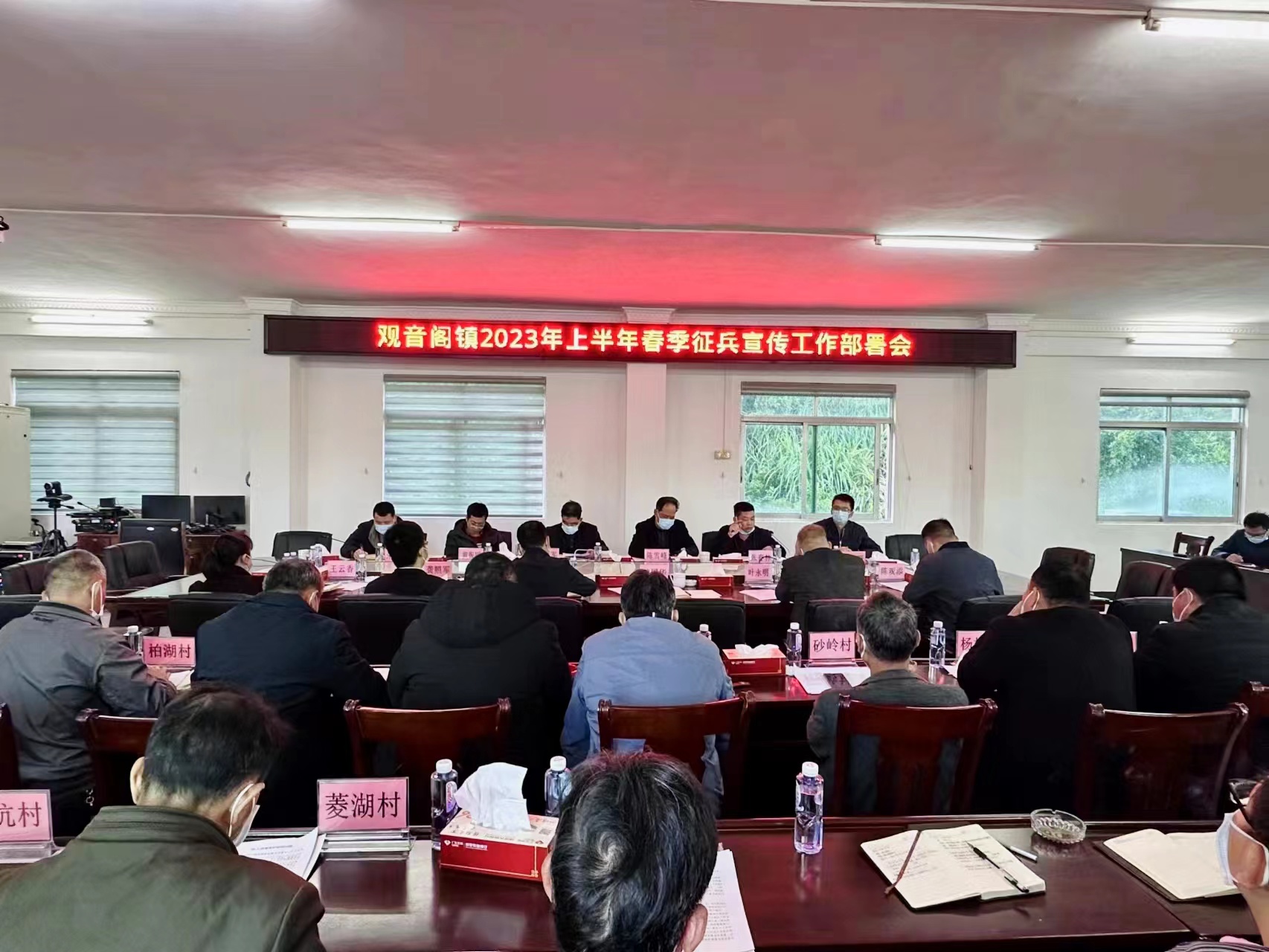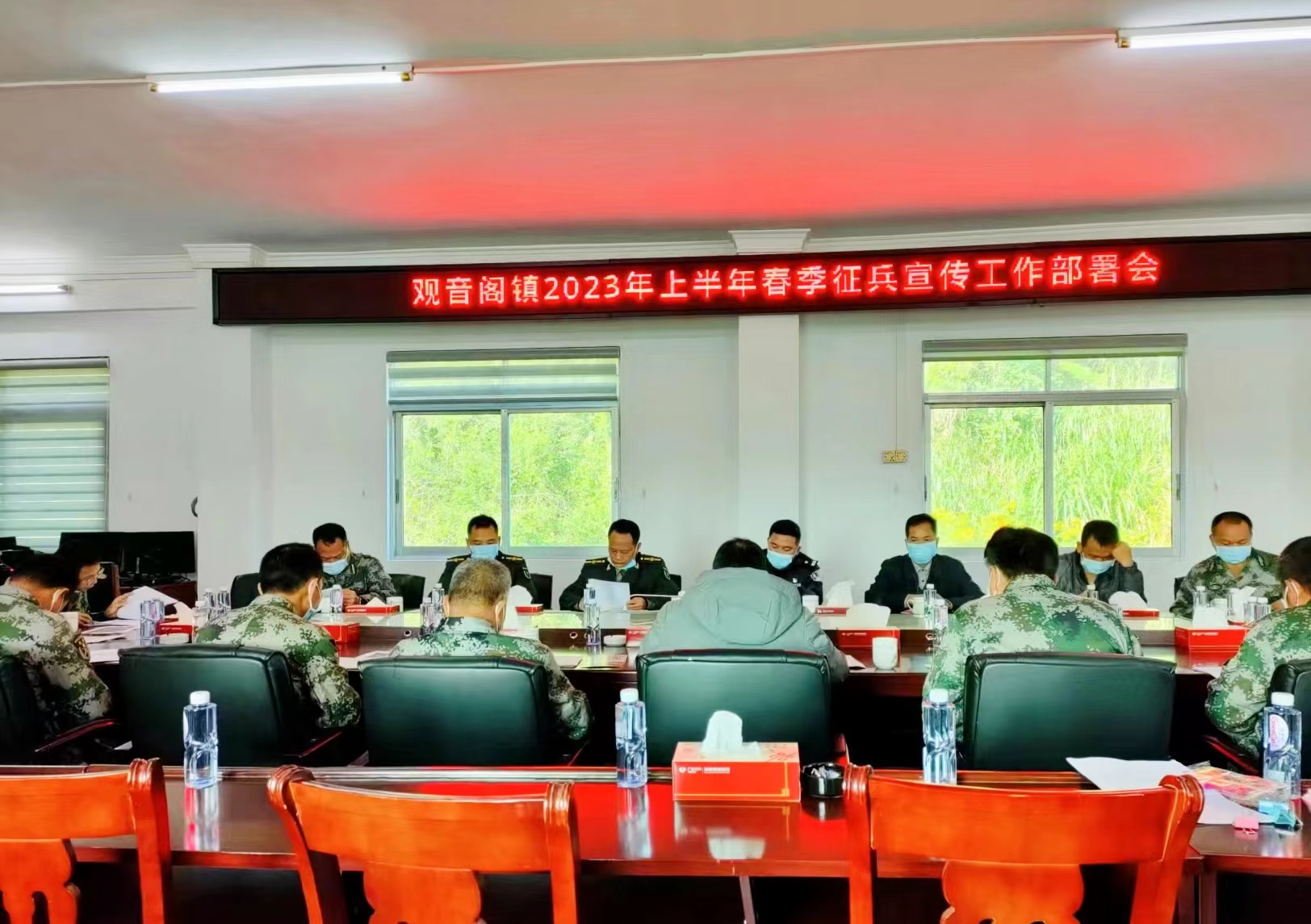 观音阁镇召开2023年上半年春季征兵宣传工作部署会,成立征兵工作领导小组,严格落实党委书记亲自抓、镇武装部部长具体抓、村(社区)干部共同抓的工作制度,确保征兵工作有序开展。此外,我镇通过对辖区内适龄青年的数量、身体状况、文化程度及身体素质等情况进行全面摸底调查,动态掌握辖区适龄青年的详细信息,在此期间共走访大学毕业生10人次,并及时做好信息调查登记工作。