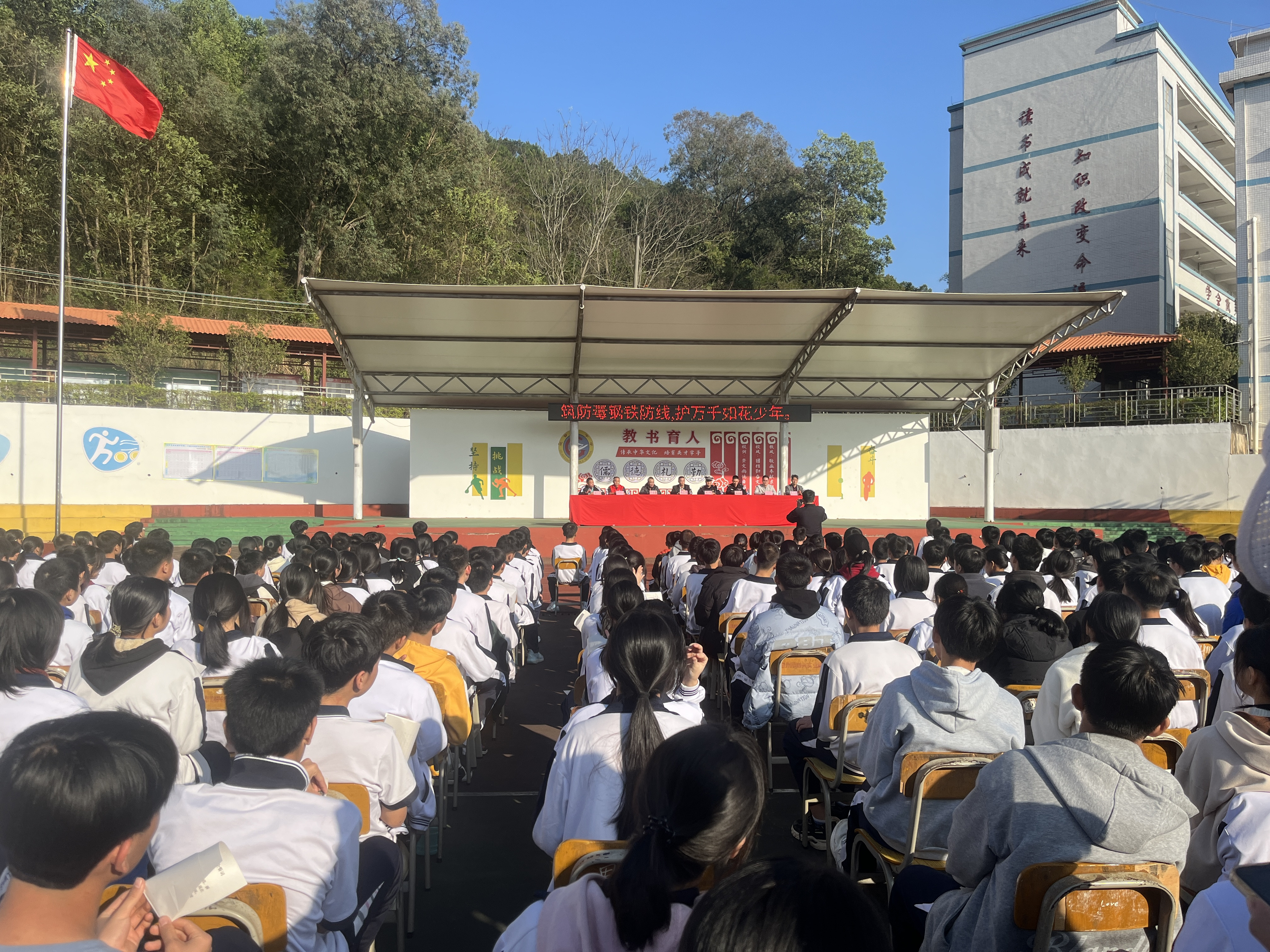 随后,禁毒专干将理论知识和真实案例结合起来,生动形象地给全体师生讲述了毒品的种类和危害,学生们如何抵制诱惑,远离毒品,引导大家树立正确的人生观,并告诫师生们认清危害,树立自我保护意识。