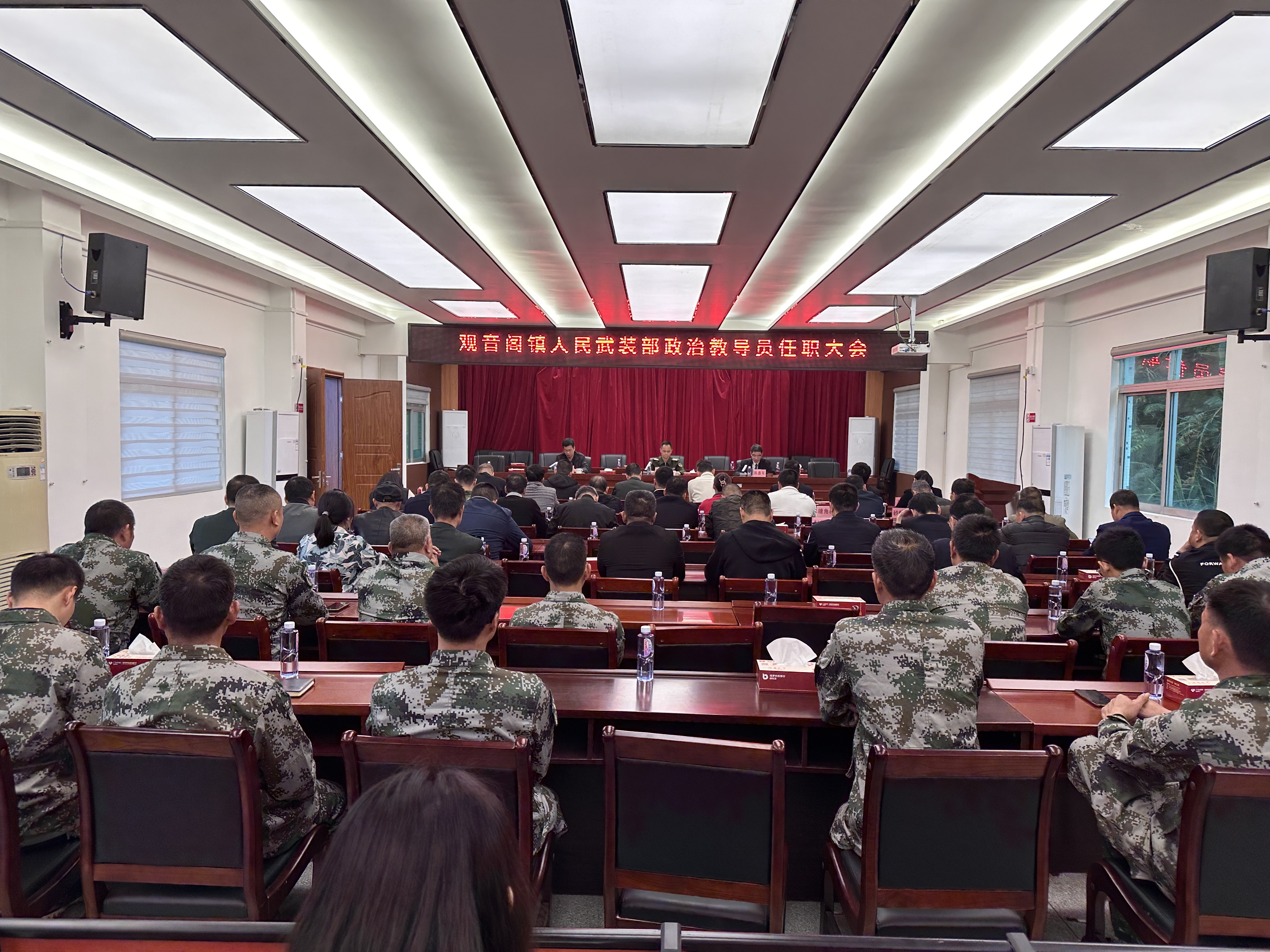 3月28日下午,观音阁镇人民武装部政治教导员任职大会在镇政府三楼1号会议室召开,县委常委、县人武部政委陈伟平,镇三套班子成员,相关部门负责人,镇武装部全体成员,各村(社区)书记、主任及民兵连长参加了会议,会议由镇党委副书记黄振明主持。