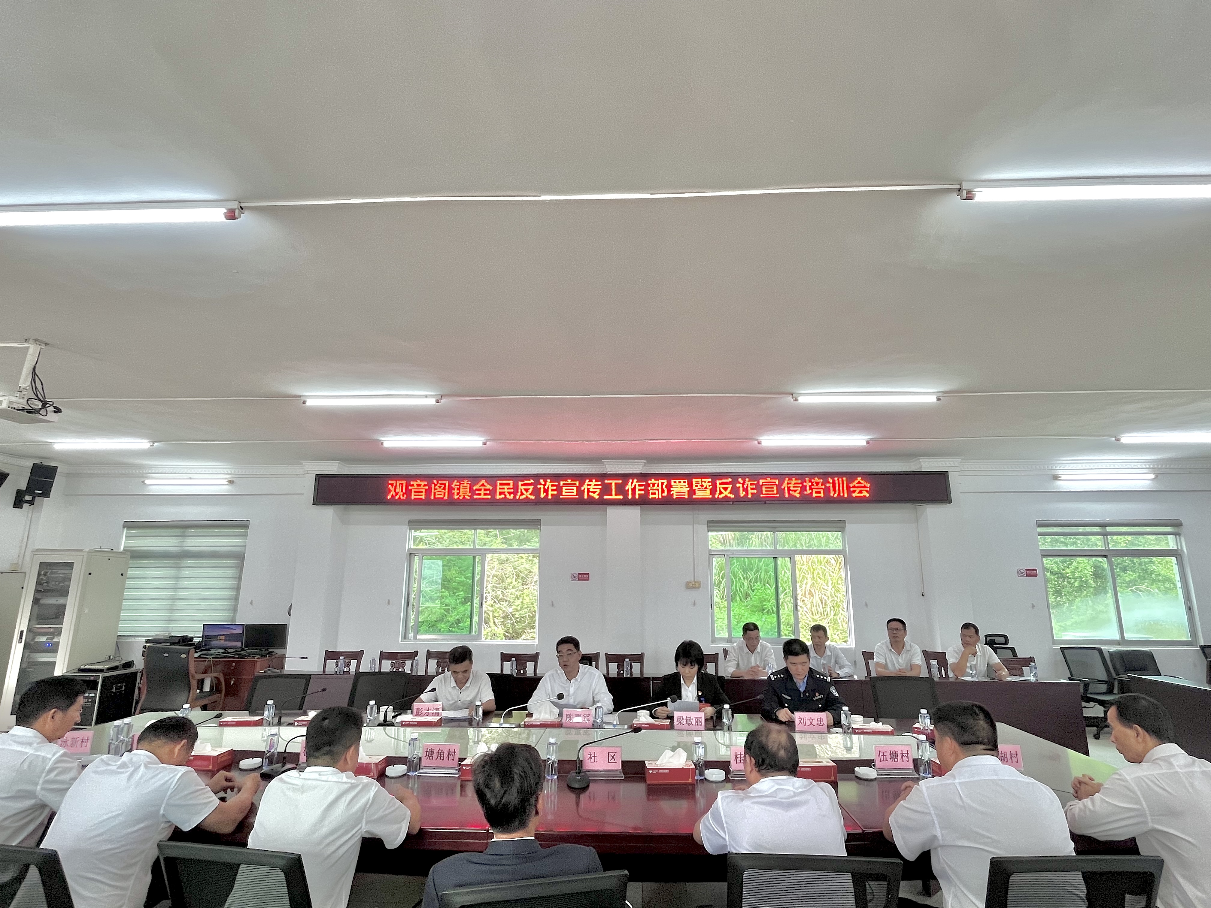4月13日上午,观音阁镇在镇政府三楼会议室召开全民反诈宣传工作部署会暨反诈宣传培训会,镇党委书记陈惠军,镇党委副书记、镇长梁敏丽,相关单位负责人以及各村(社区)书记参加了会议,会议由镇党委书记陈惠军主持。