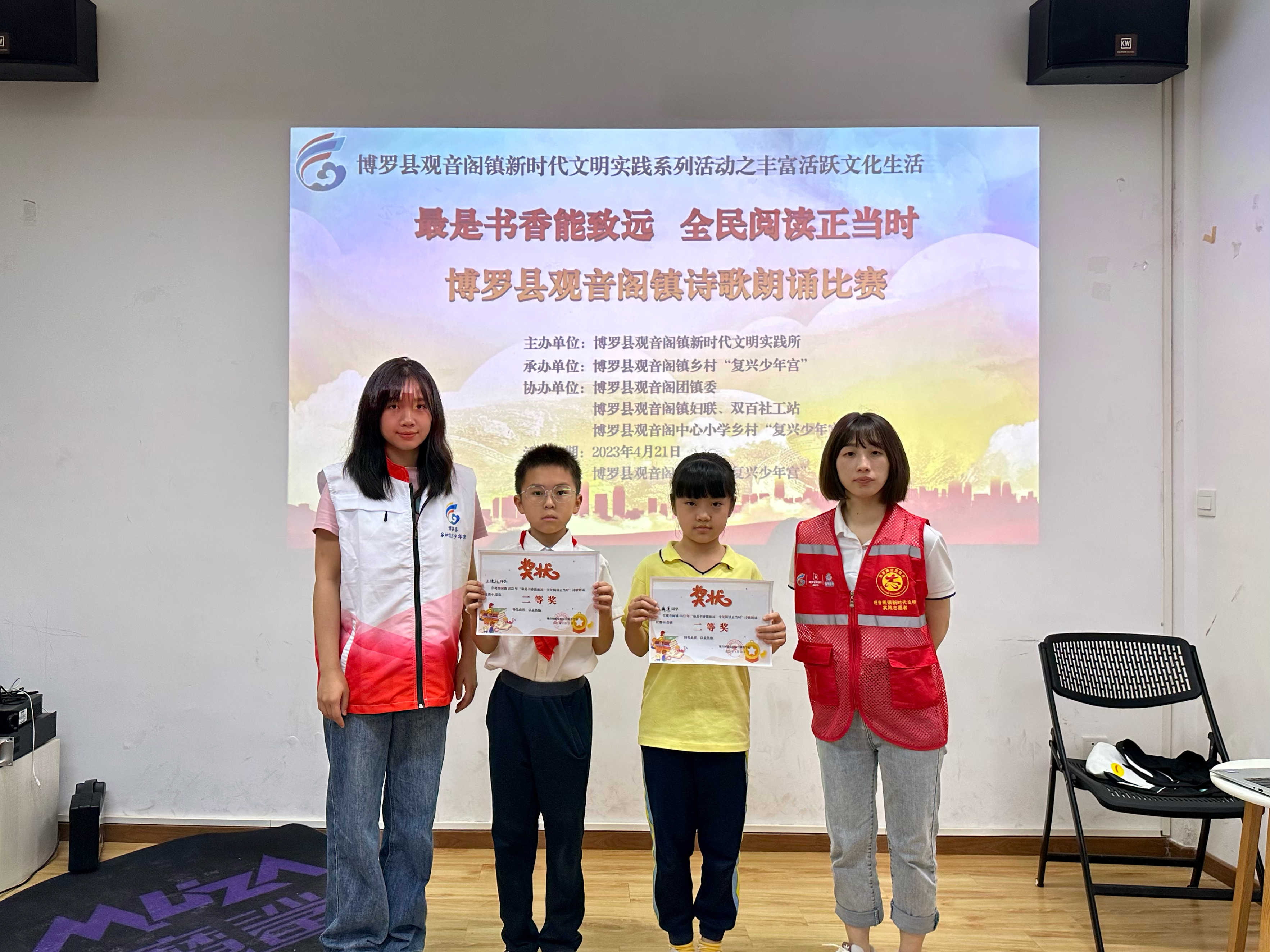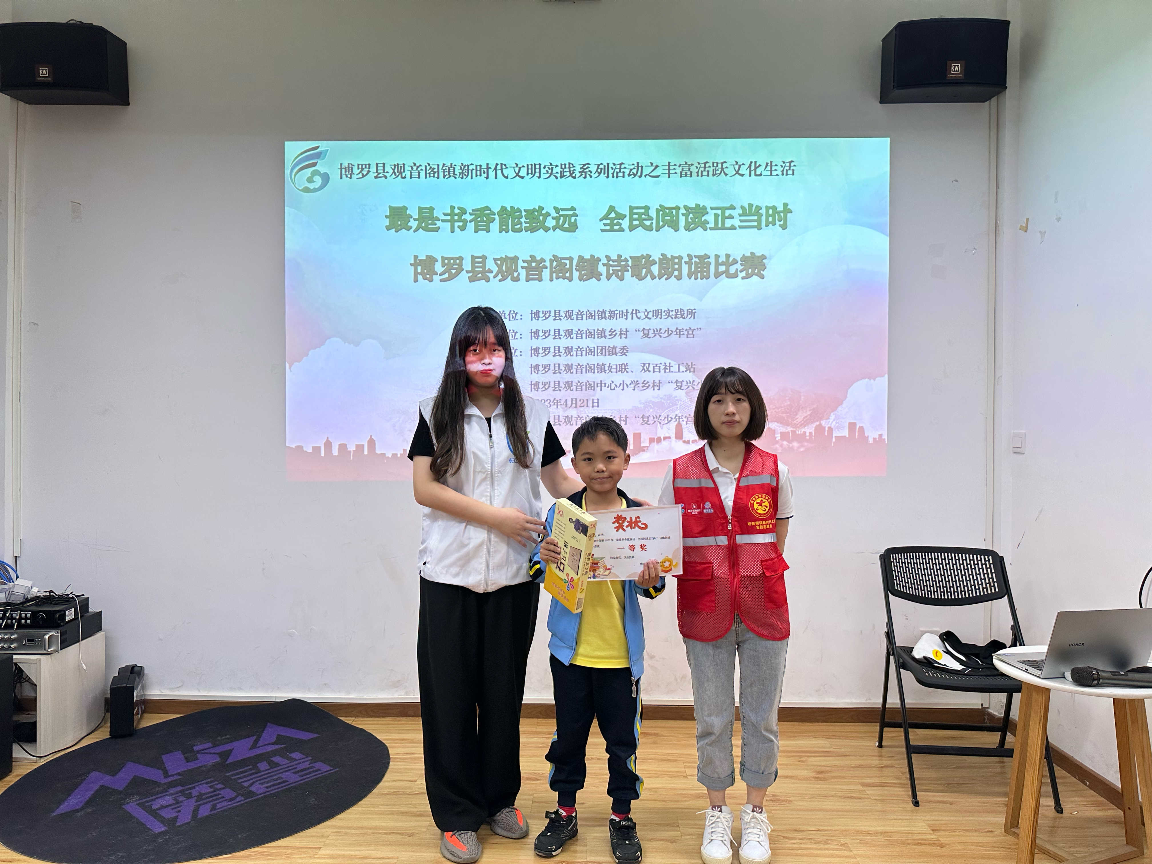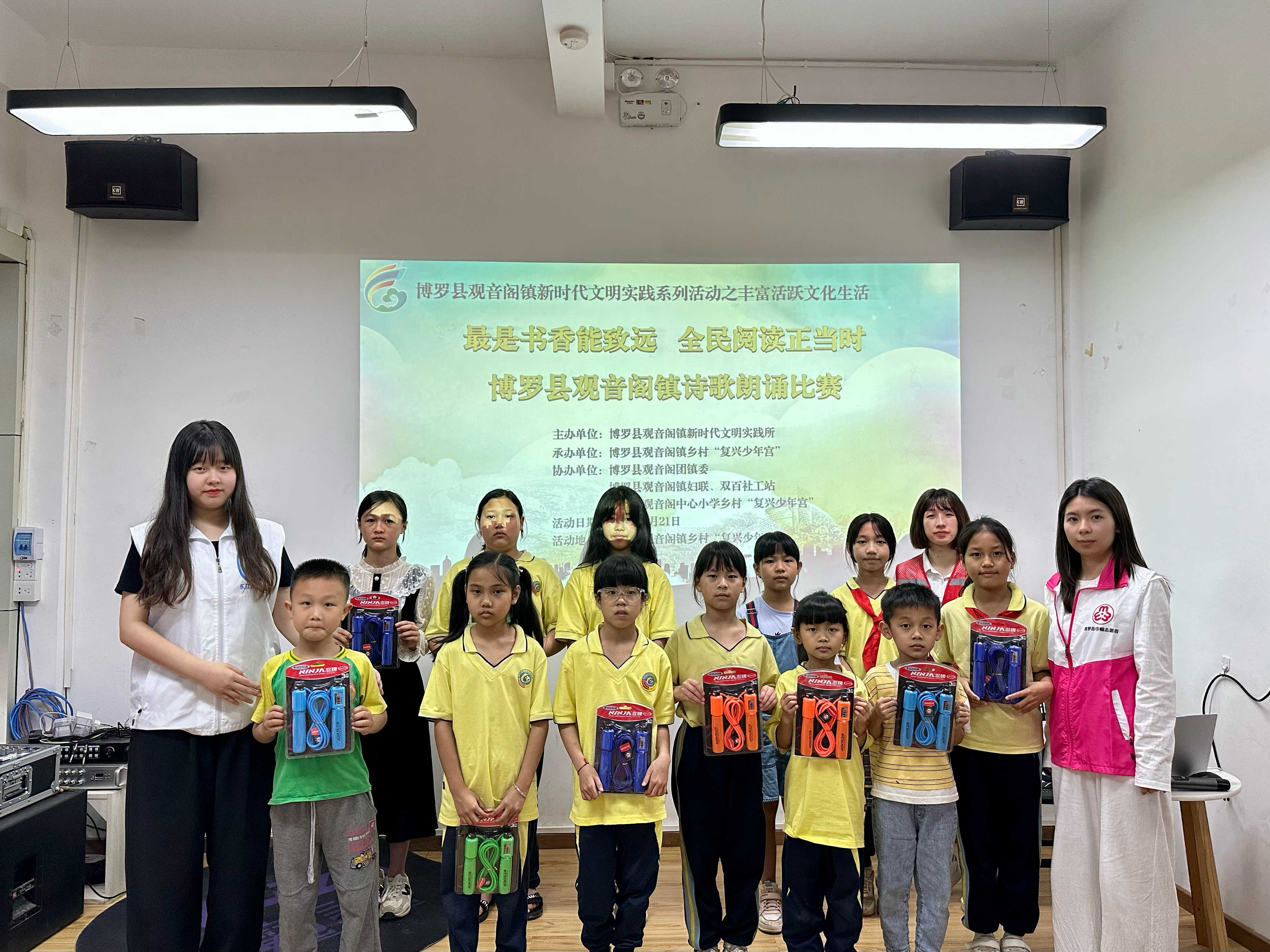 四月芳菲,书香为伴。为深入推进全民阅读,丰富青少年儿童的课余文化生活,营造全民读书的浓厚氛围,在第28个“4.23 世界读书日”来临之际,4月21日下午,观音阁镇新时代文明实践所联合镇妇联、团镇委、双百社工站、观音阁中心小学乡村“复兴少年宫”在镇复兴少年宫开展“最是书香能致远·全民阅读正当时”诗歌朗诵比赛活动,此次活动共吸引了25名孩子报名参加。