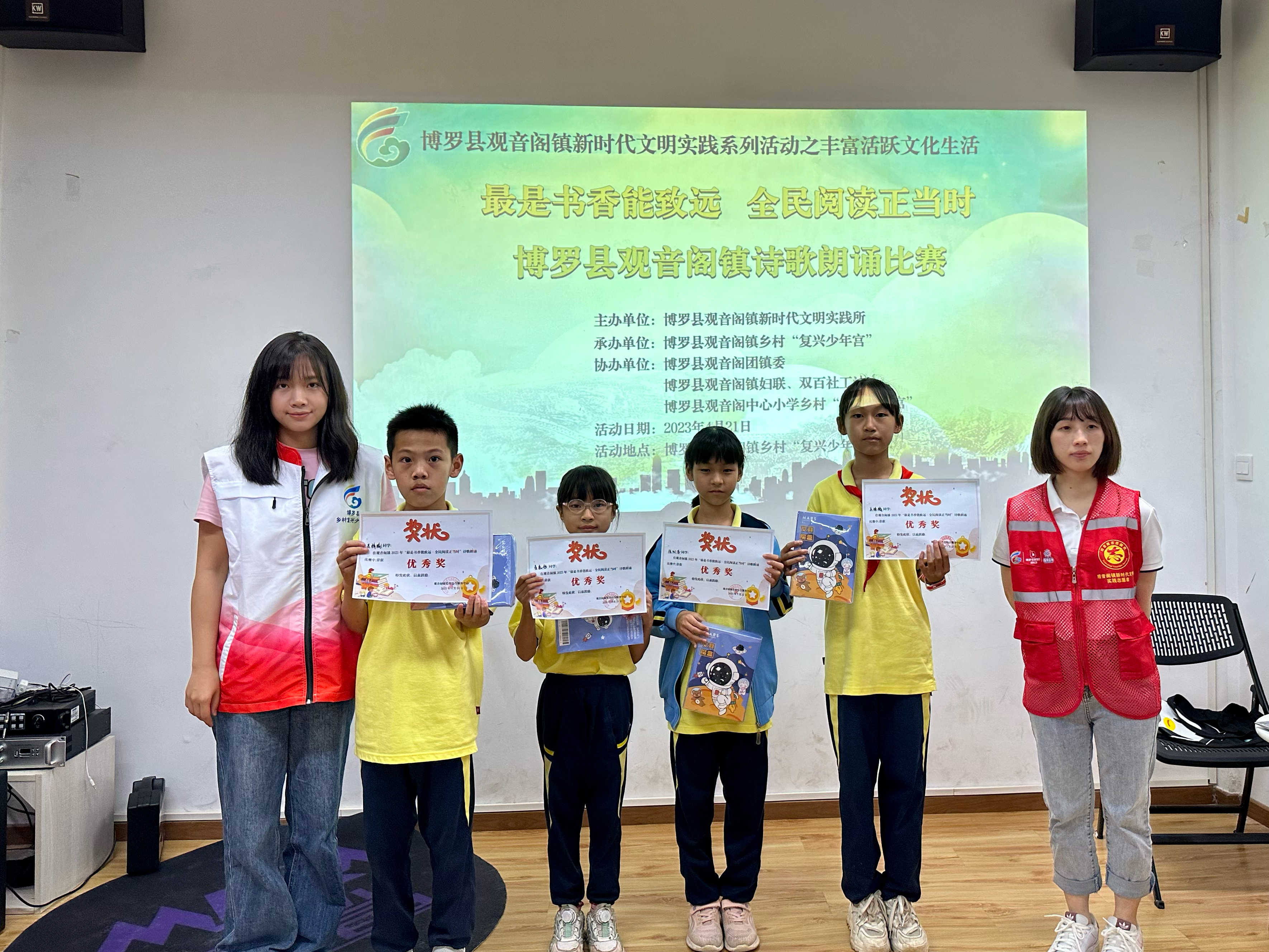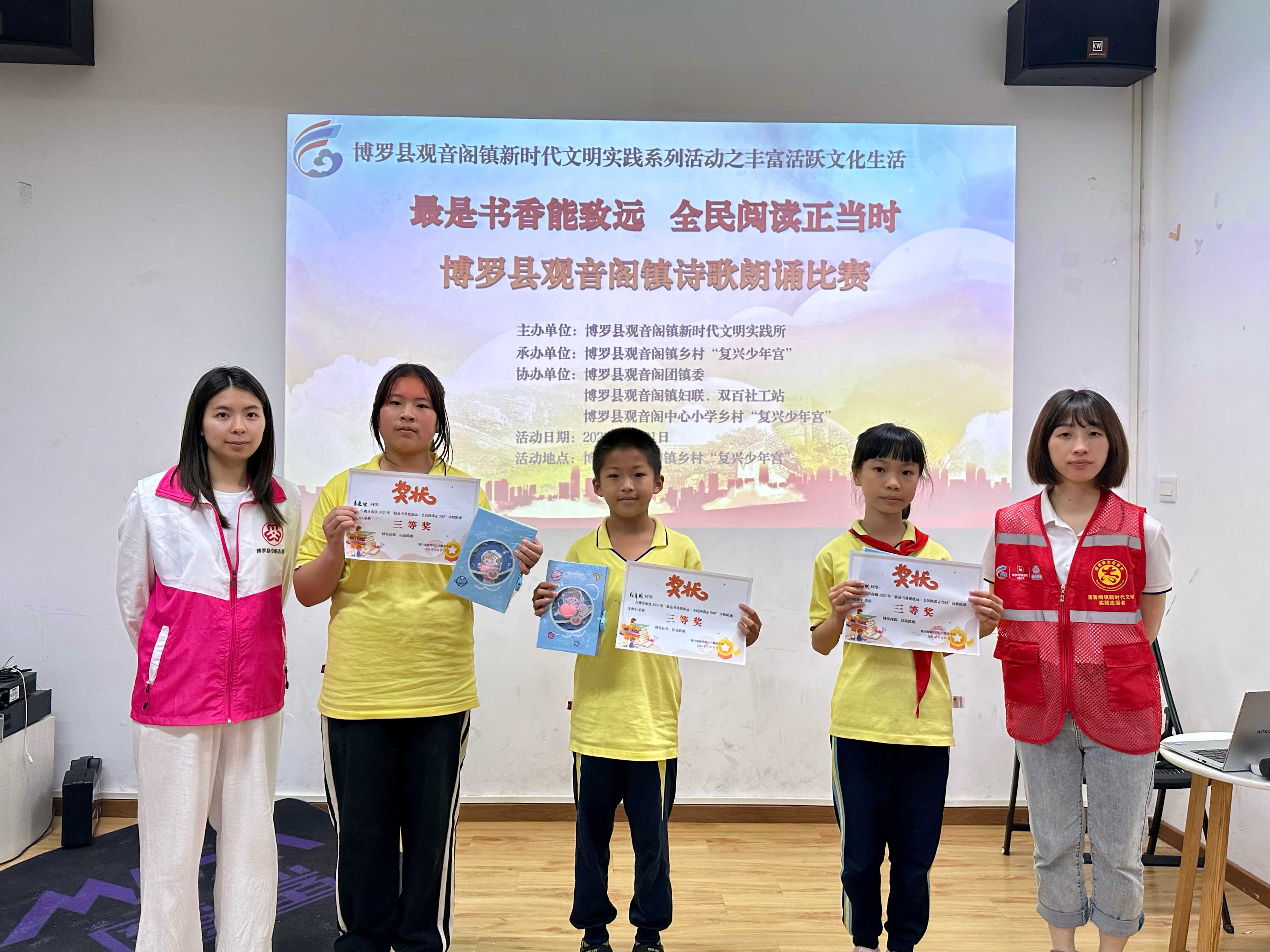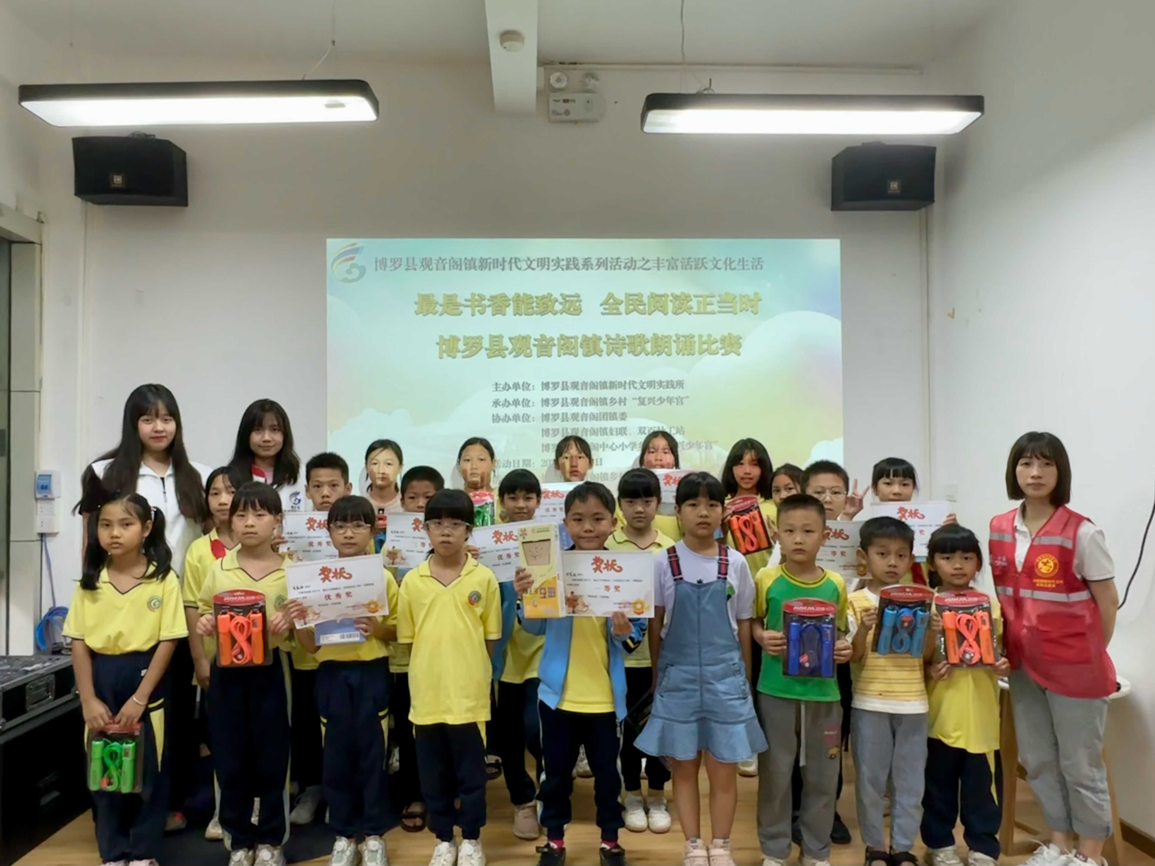 四月芳菲,书香为伴。为深入推进全民阅读,丰富青少年儿童的课余文化生活,营造全民读书的浓厚氛围,在第28个“4.23 世界读书日”来临之际,4月21日下午,观音阁镇新时代文明实践所联合镇妇联、团镇委、双百社工站、观音阁中心小学乡村“复兴少年宫”在镇复兴少年宫开展“最是书香能致远·全民阅读正当时”诗歌朗诵比赛活动,此次活动共吸引了25名孩子报名参加。