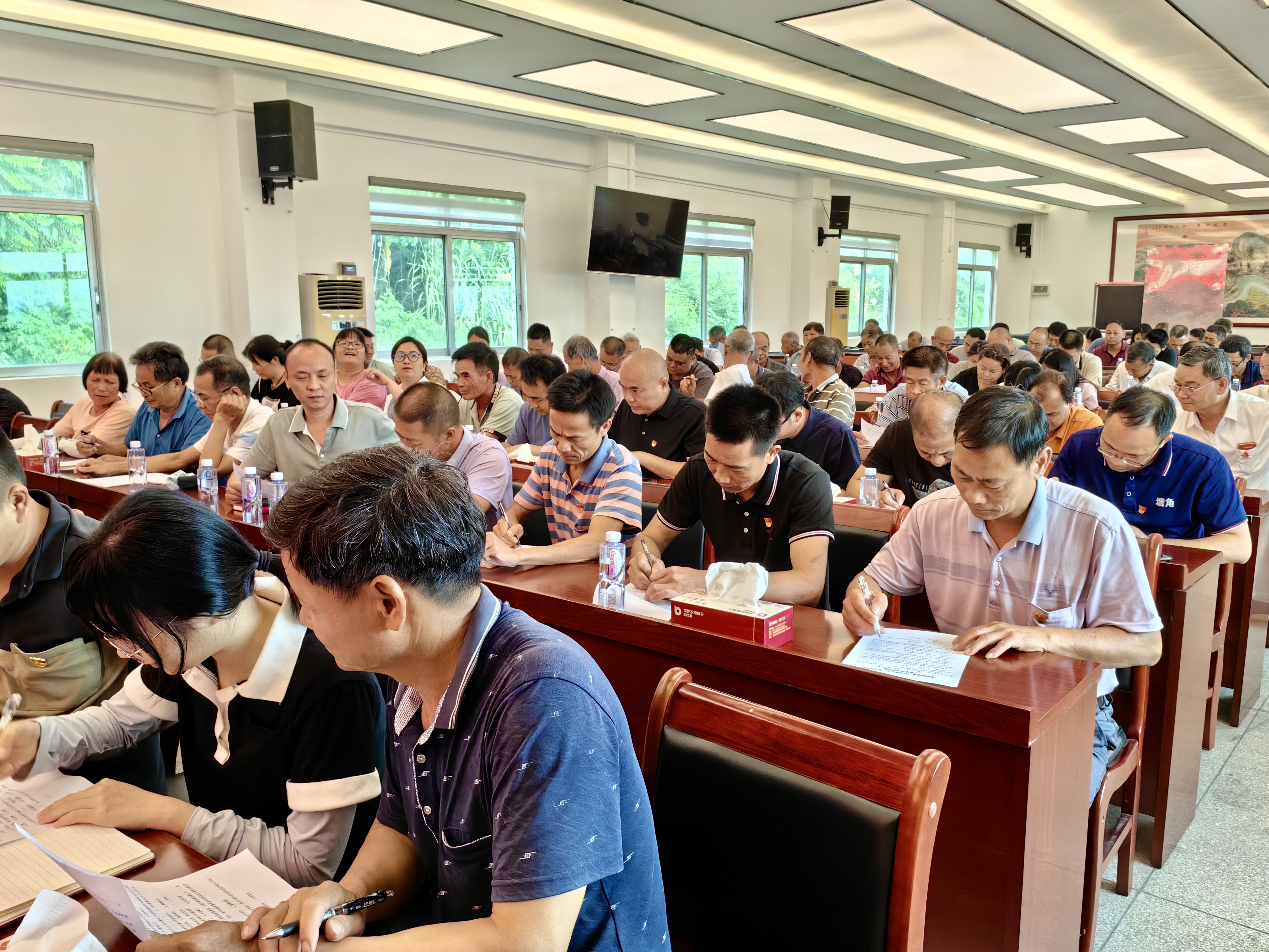 为深入学习贯彻党的二十大精神,坚持不懈用习近平新时代中国特色社会主义思想凝心铸魂,落实“思想铸党魂、学习增斗志”党员进党校三年培训行动。5月18日上午,观音阁镇委党校举办“百人讲师团”主题党课培训班,邀请惠州市镇街党校“百人讲师团”成员、市委党校党建教研部主任陈学锋现场授课。镇党委副书记黄振明,镇党委委员、组织委员龚照军以及来自各党支部的107名党员参加培训。