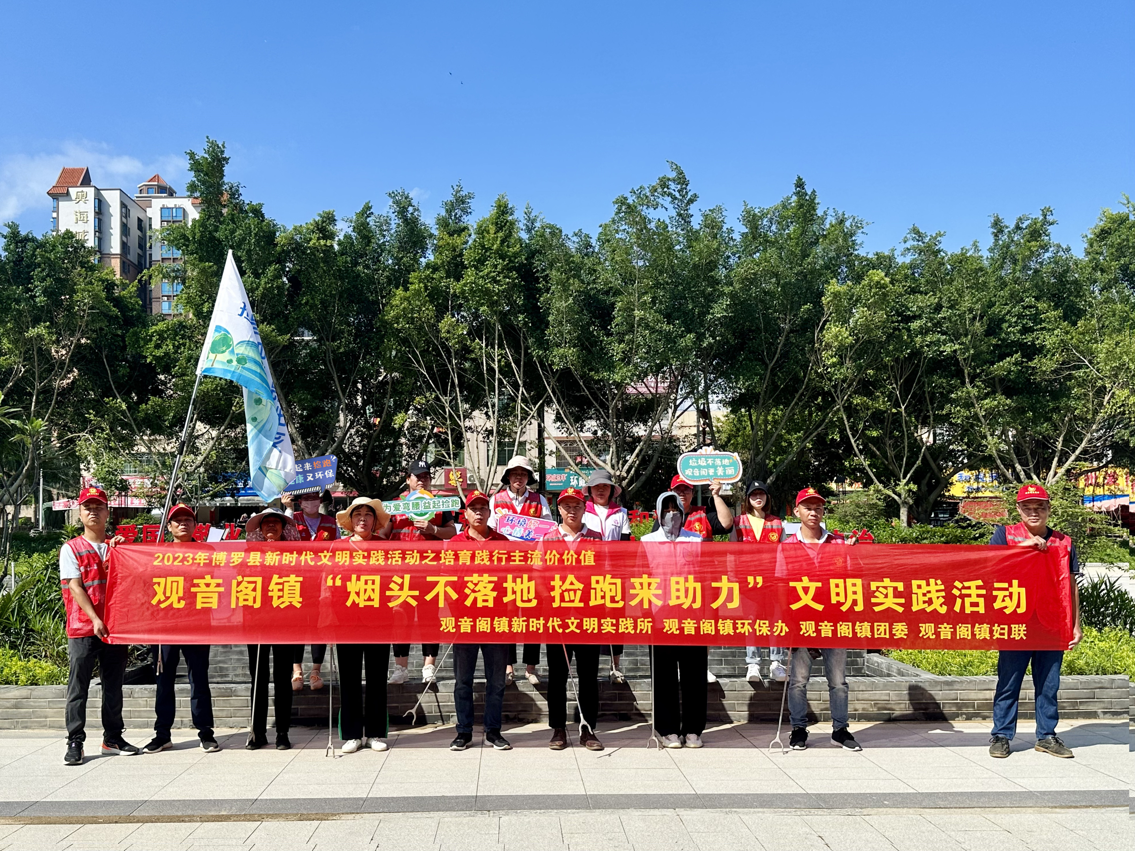 今年6月5日是第52个“世界环境日”。为了营造人人关心支持与参与环境的良好社会氛围,切实增强广大群众的环保意识,观音阁镇新时代文明实践所联合镇环保办、团镇委、妇联在东江埠鹅公园开展“烟头不落地 捡跑来助力”文明实践活动。