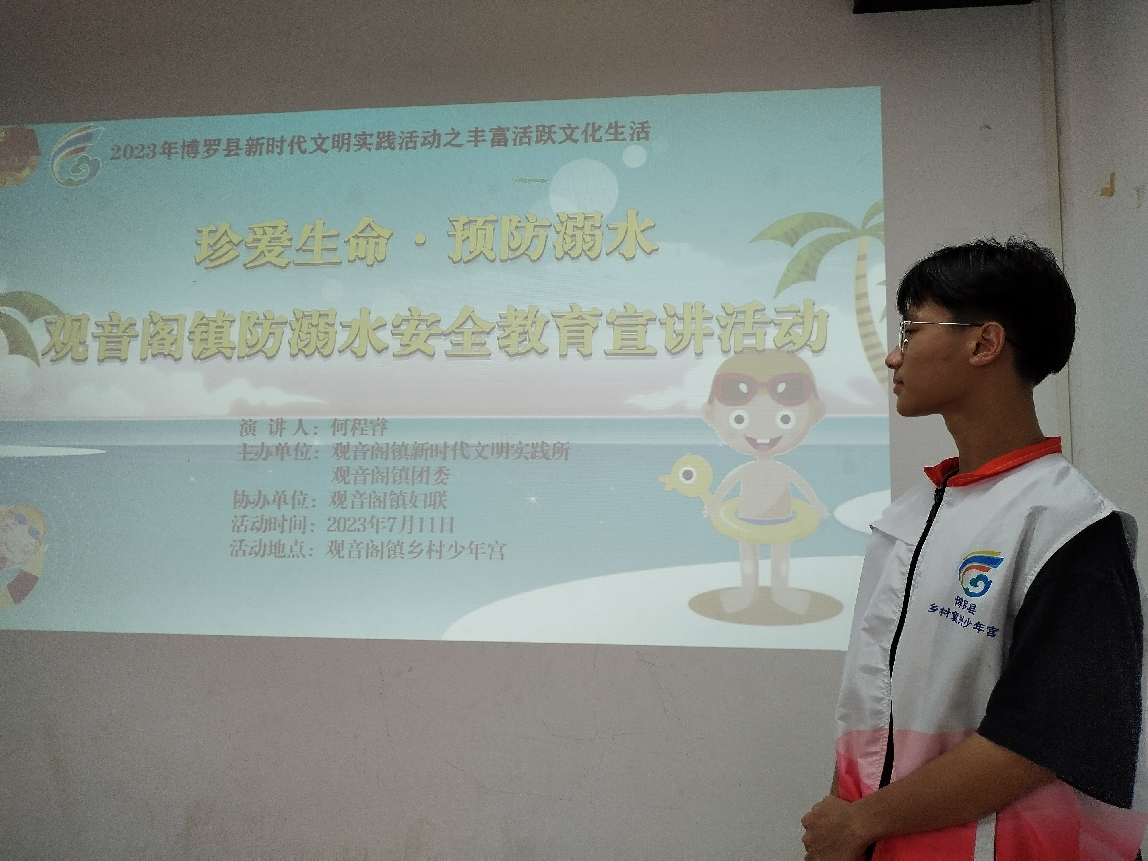 为切实加强青少年儿童防溺水安全教育,有效预防溺水事件的发生,全面提高青少年儿童的安全方法防范意识。7月11日下午,观音阁镇新时代文明实践所联合镇团委、镇妇联在观音阁镇乡村少年宫开展“珍惜生命·预防溺水”防溺水安全教育宣讲活动,吸引20名孩子们参加活动。