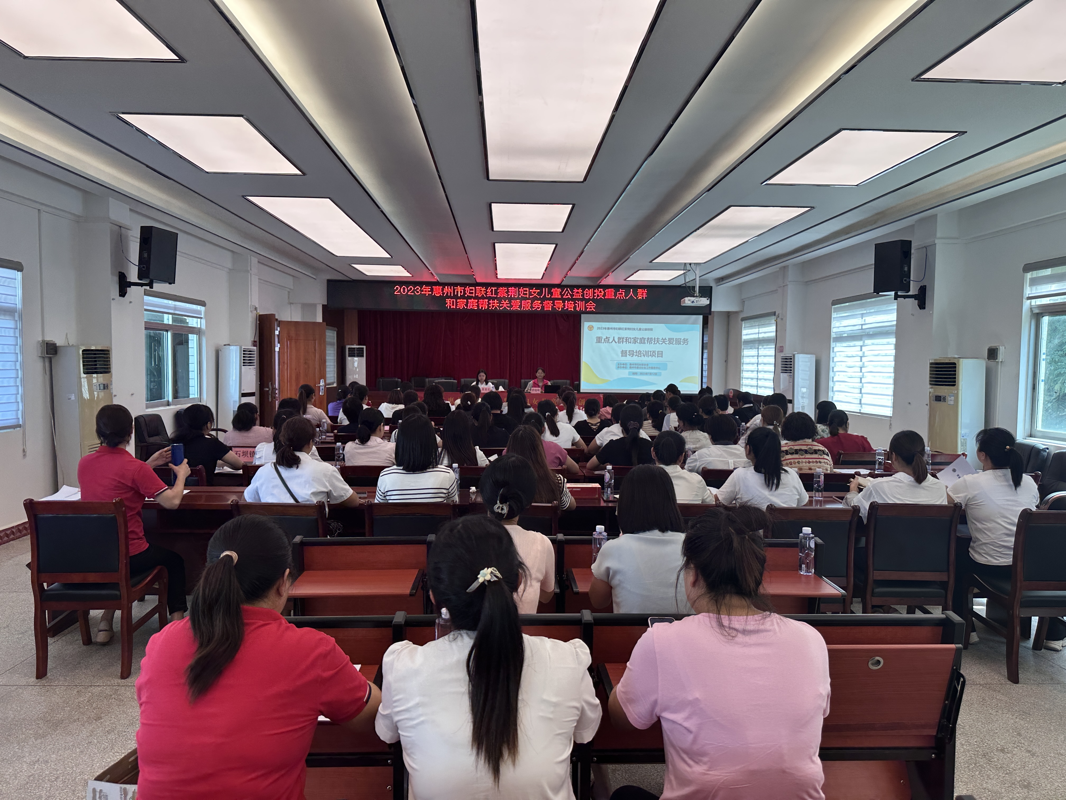 为贯彻落实全国、省、市妇联关于进一步开展重点人群和家庭关爱帮扶工作要求,切实维护妇女儿童合法权益,发挥妇联组织在基层社会治理中的独特作用,7月12日下午,由中文博彩平台妇女联合会主办、惠州市惠众社会工作服务中心承办的2023年中文博彩平台妇联红紫荆妇女儿童公益创投“重点人群和家庭帮扶关爱服务督导培训”项目培训活动在观音阁镇举行。观音阁镇、杨侨镇、麻陂镇、石坝镇妇联主席以及各村(居)妇联主席约70人参加本次培训活动。