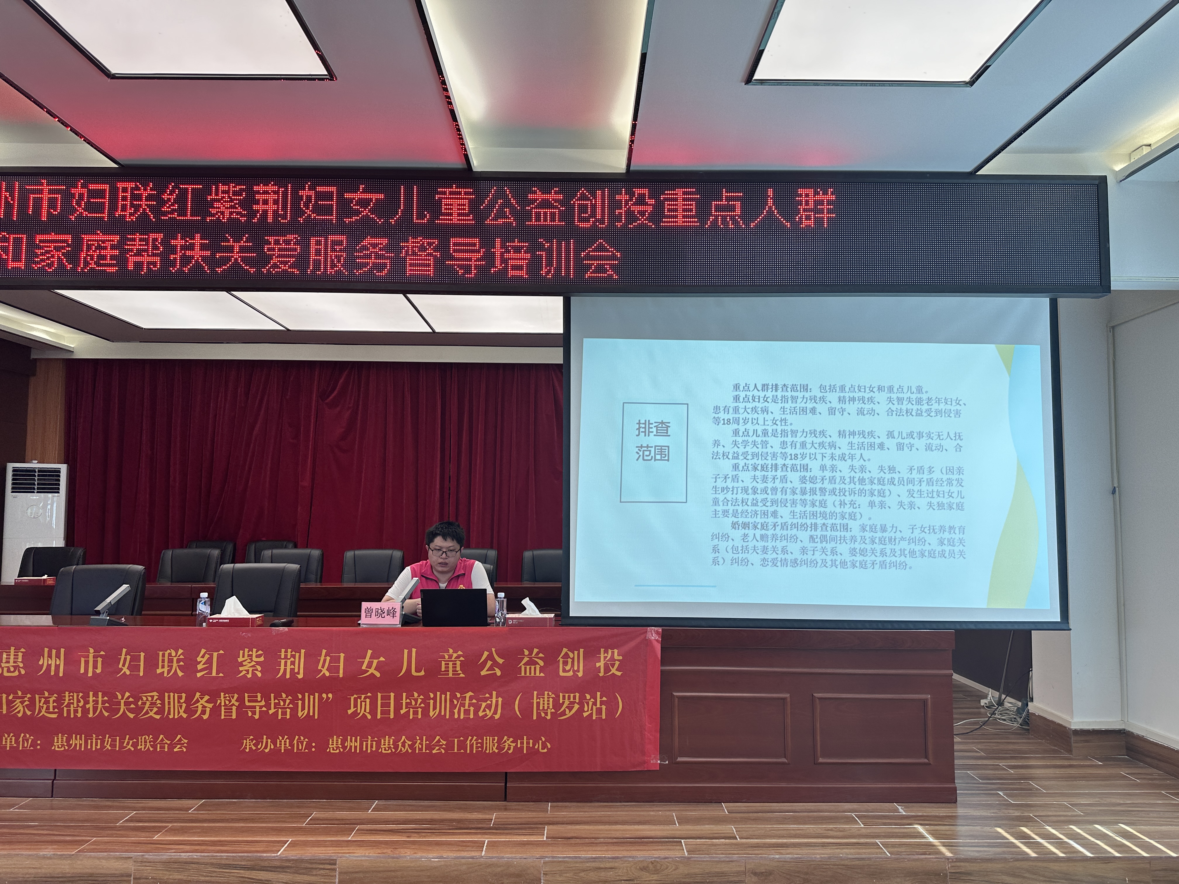 惠众社工曾晓峰督导对参与培训人员进行了各项服务的培训,从排查范围和统计标准、如何开展服务、台账填写要求和分级标准几方面进行讲解并耐心地为大家答疑解惑。本次培训活动进一步提升了各镇、村妇联工作人员的项目水平,促进交流进步,为更好地为群众服务打下了坚实基础。