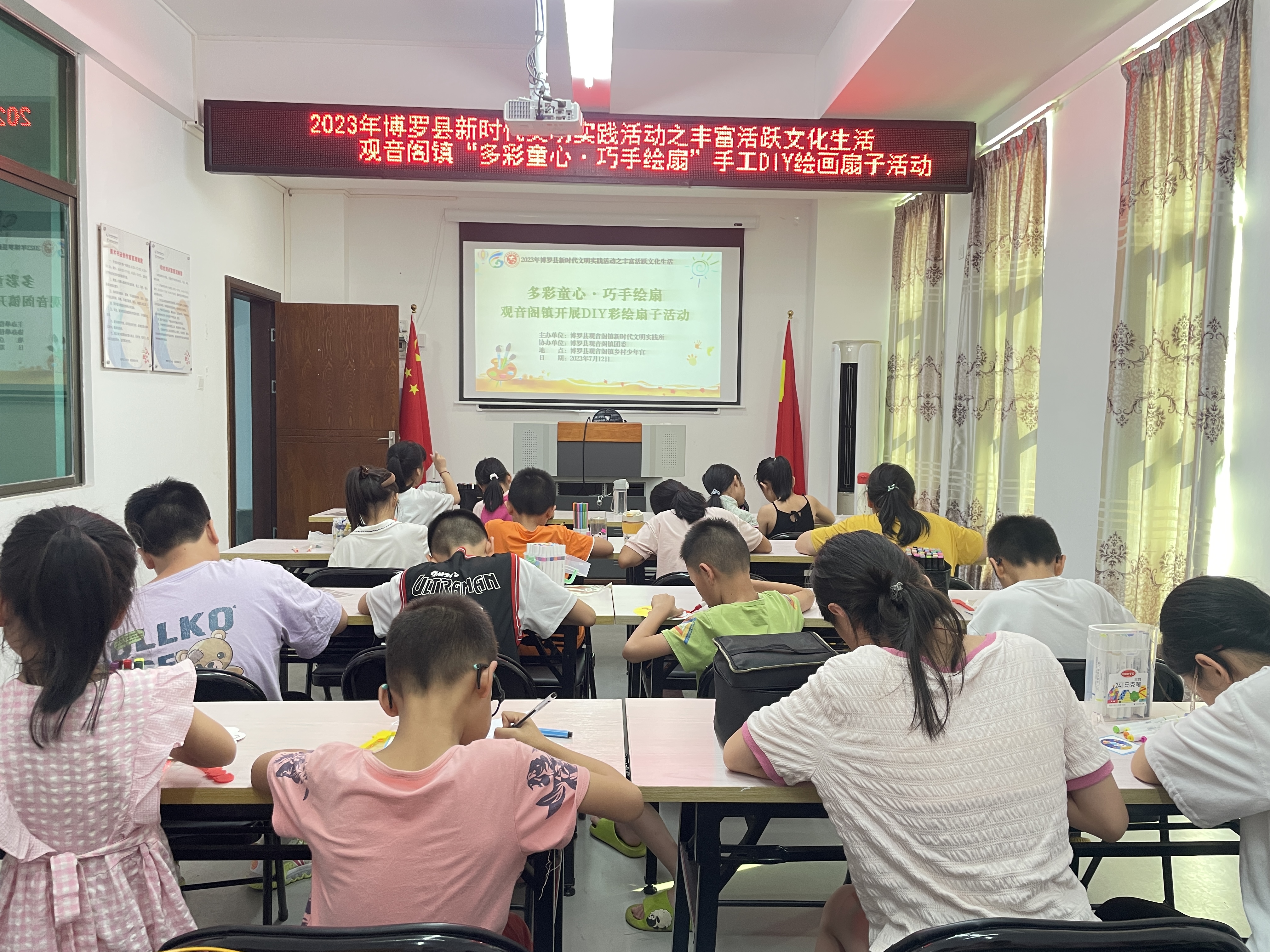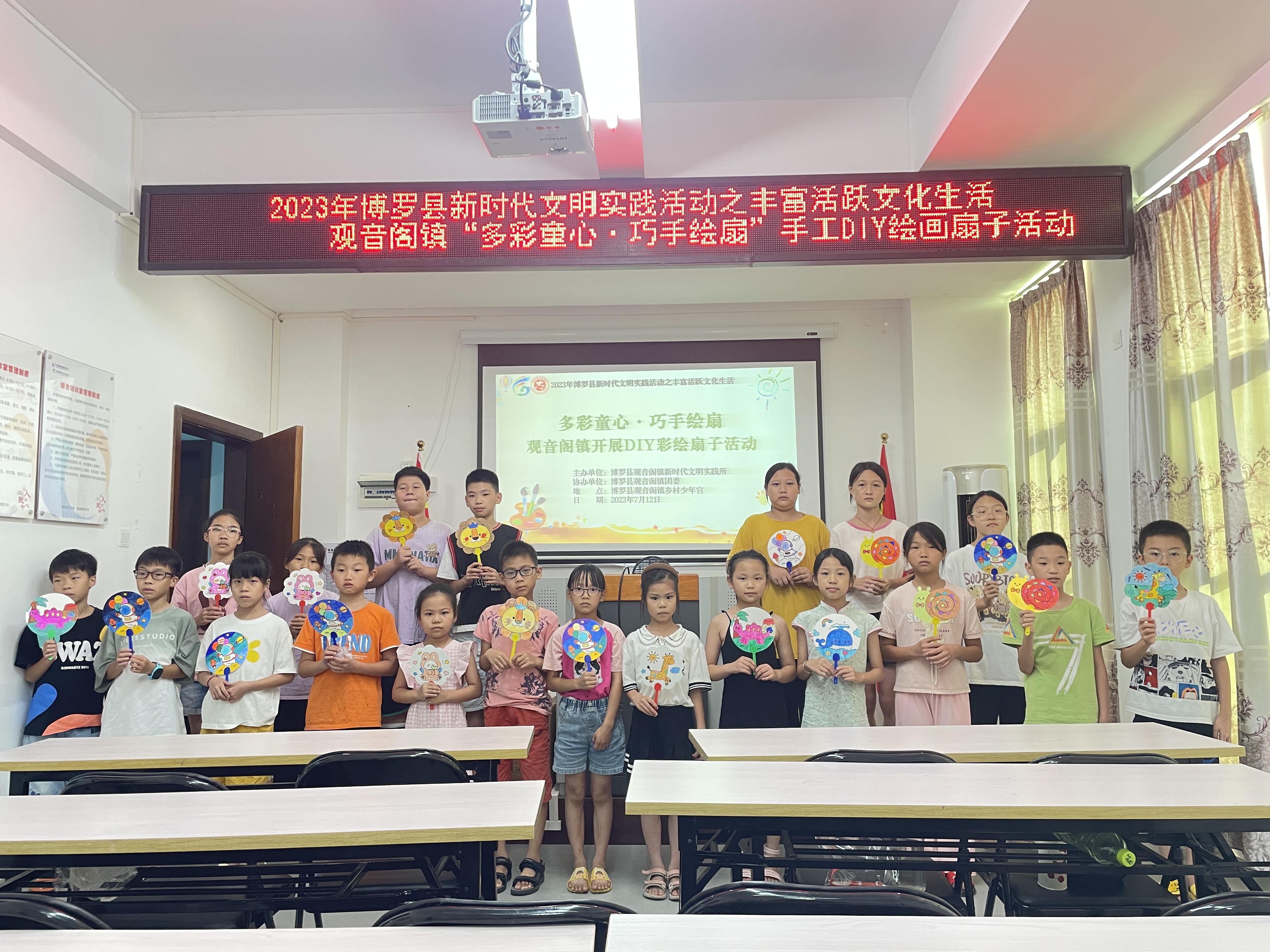 悠悠夏日长,小扇引微凉。为丰富辖区儿童的暑期生活,培养孩子感受美、创造美的能力,7月12日下午,观音阁镇新时代文明实践所联合镇团委、镇妇联在观音阁镇乡村少年宮开展“多彩童心·巧手绘扇”手工DIY绘画扇子活动。