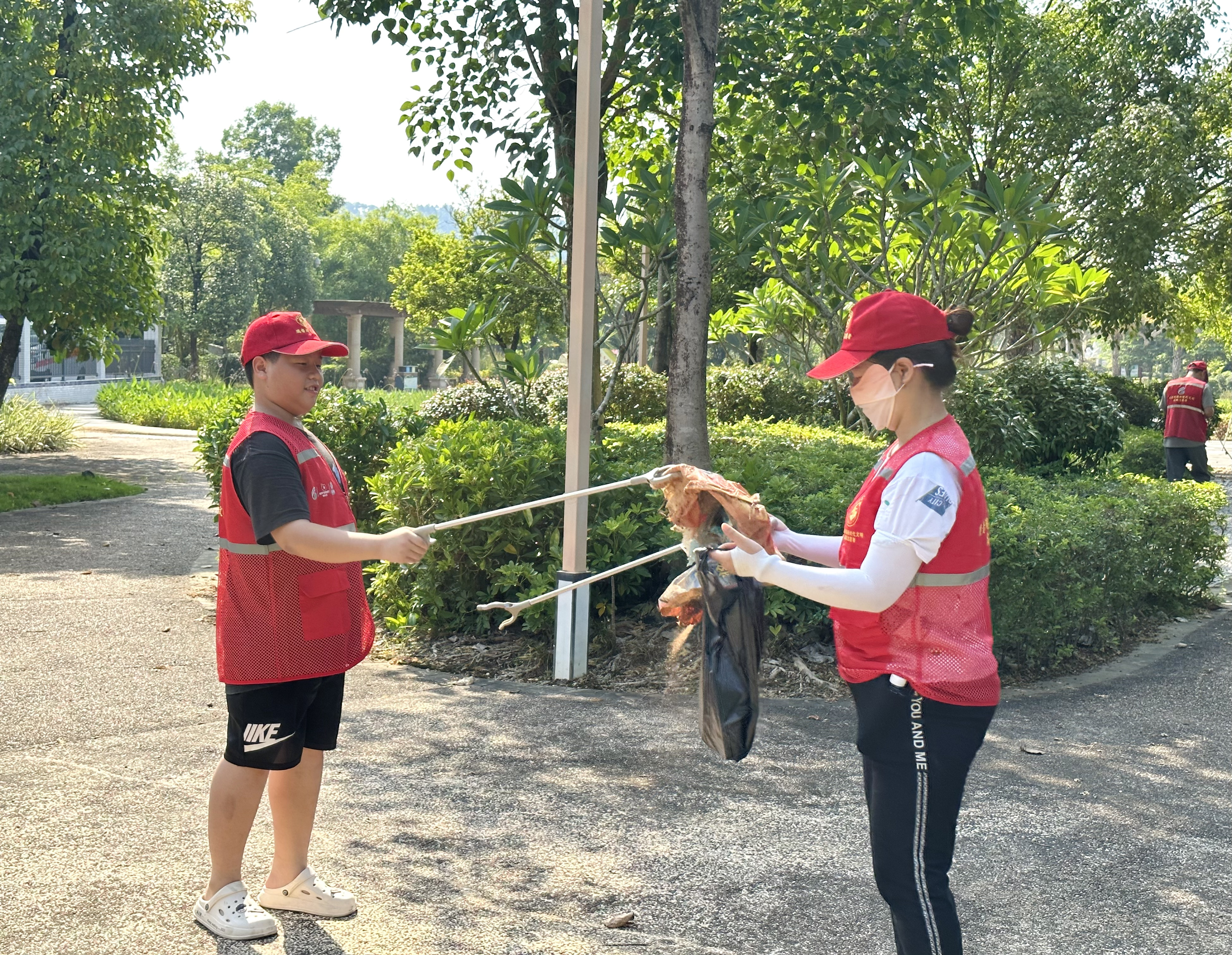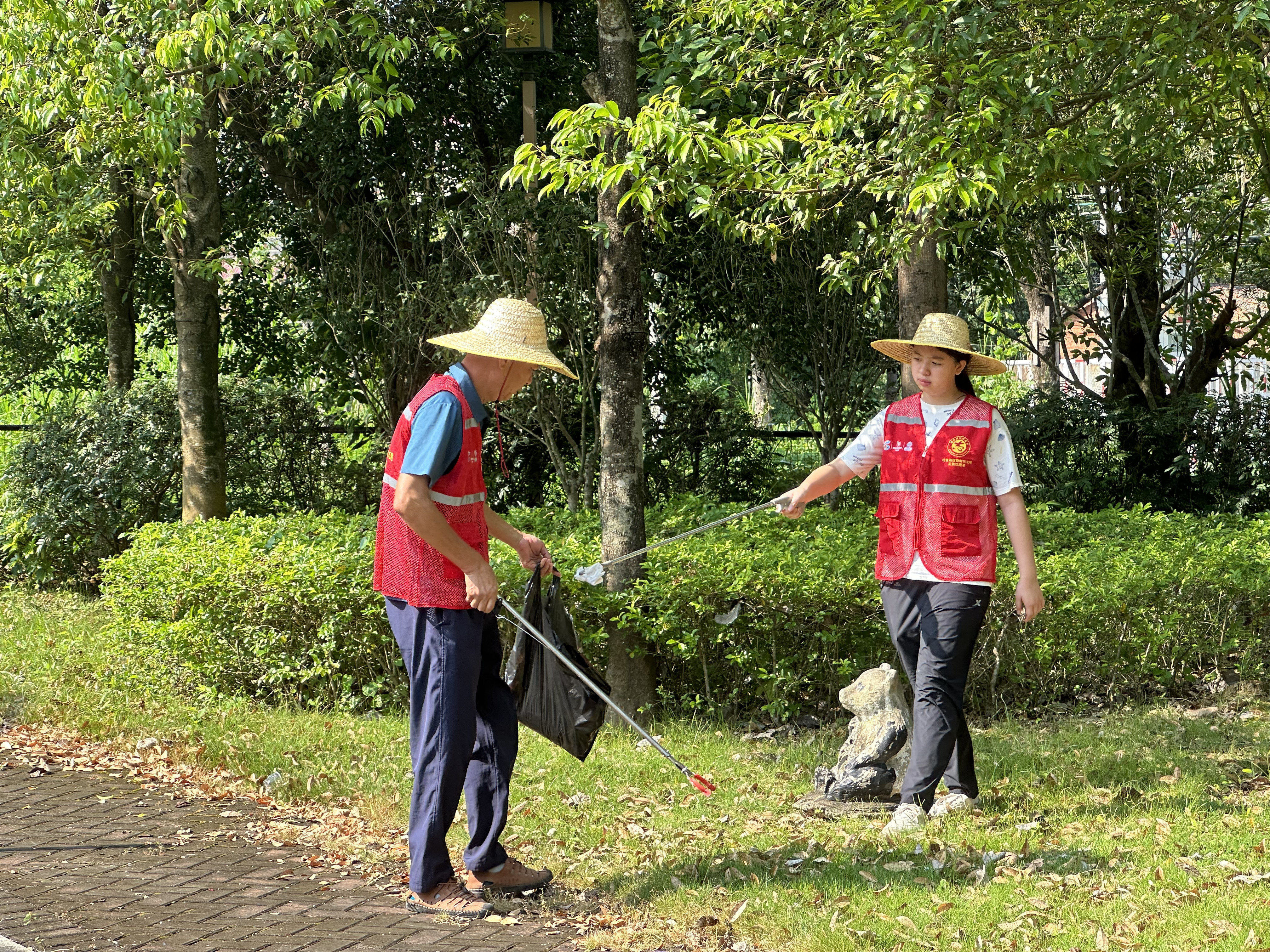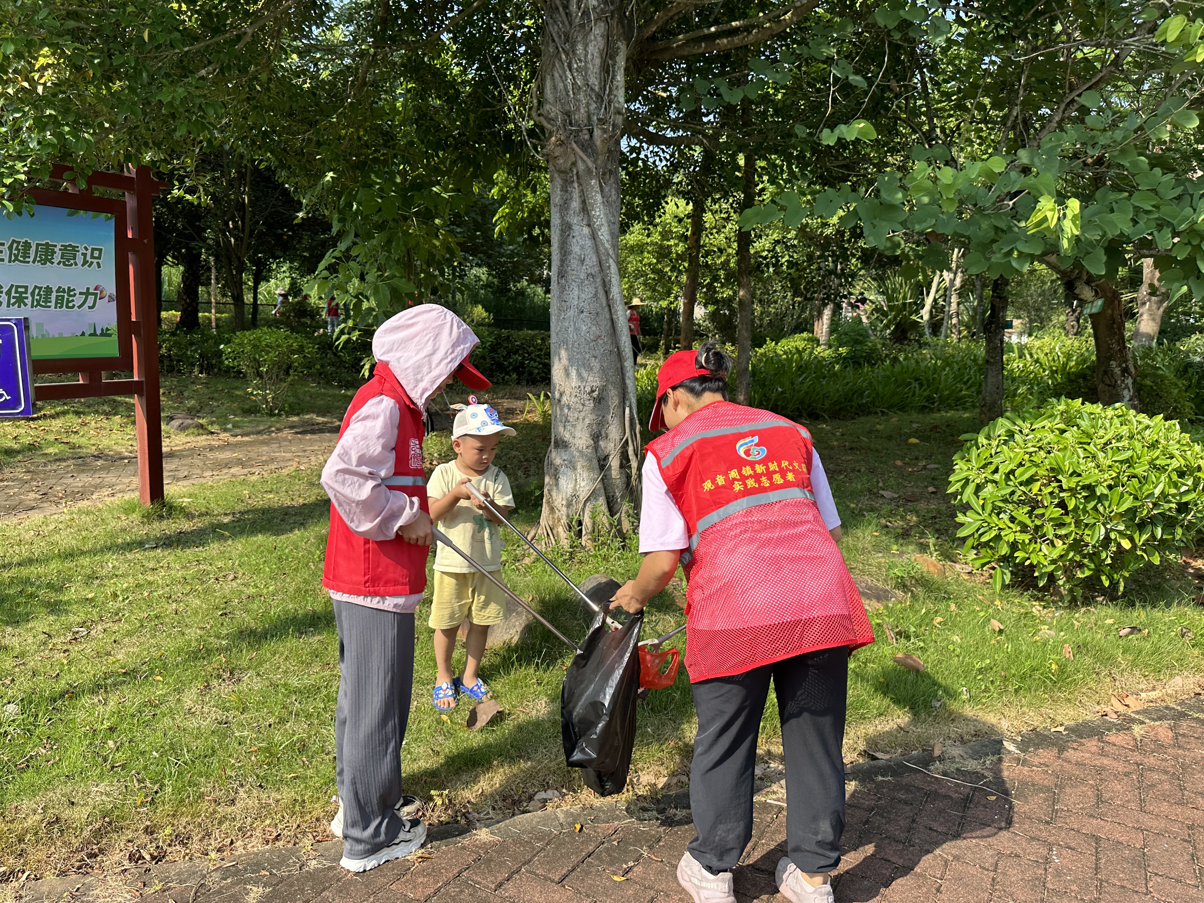 活动中,亲子志愿者手拿夹子、垃圾袋,沿广场将绿化带、人行道、花丛中的塑料瓶、纸屑、烟头等垃圾拾起来装进垃圾袋。有些隐藏很深的垃圾也没被放过,纷纷被志愿者们用火眼金睛“揪”了出来。同时,向过往行人宣传:“垃圾不落地,观音阁更美丽”的环保理念,号召更多人加入爱护环境的队伍中来。
