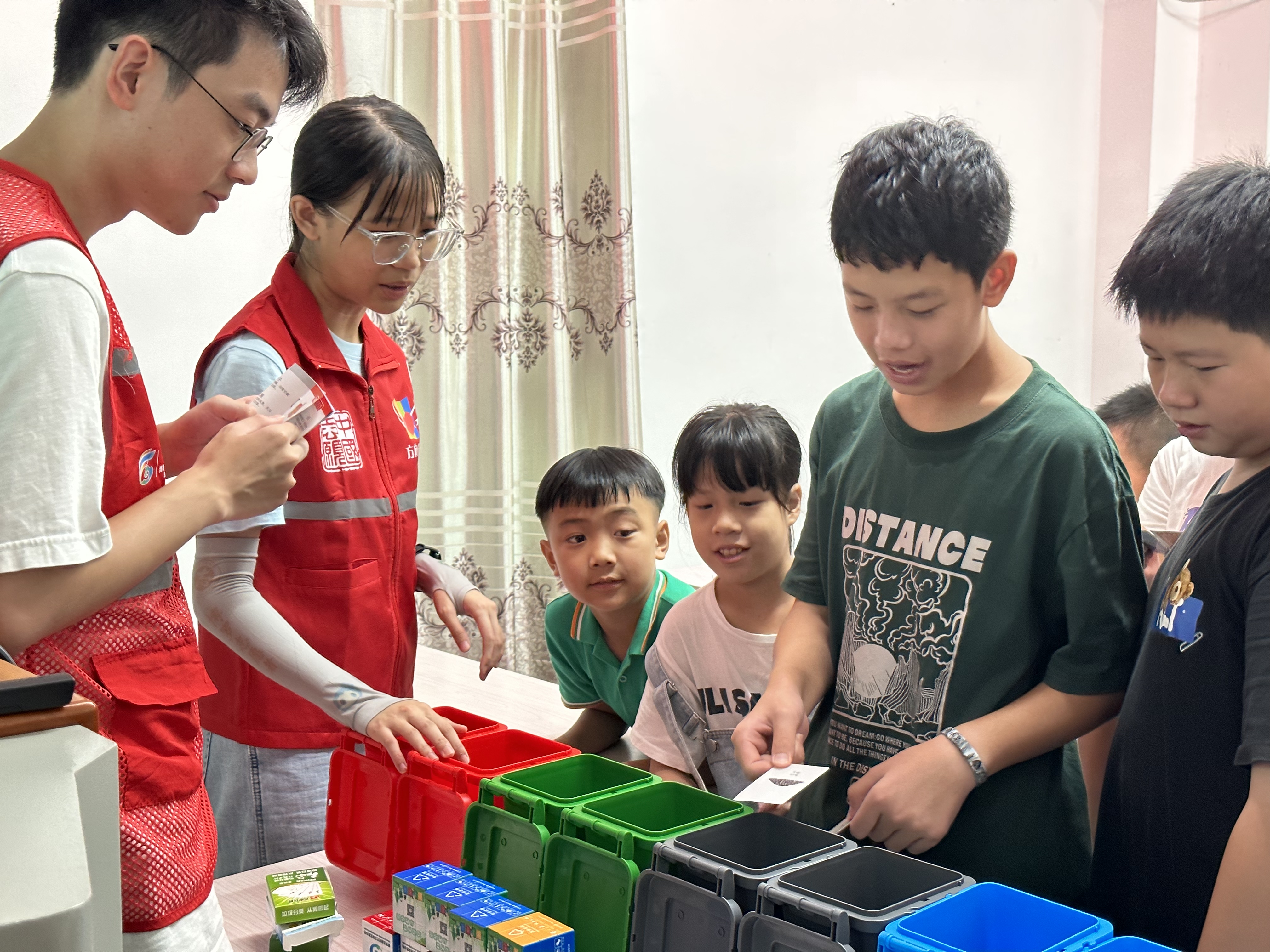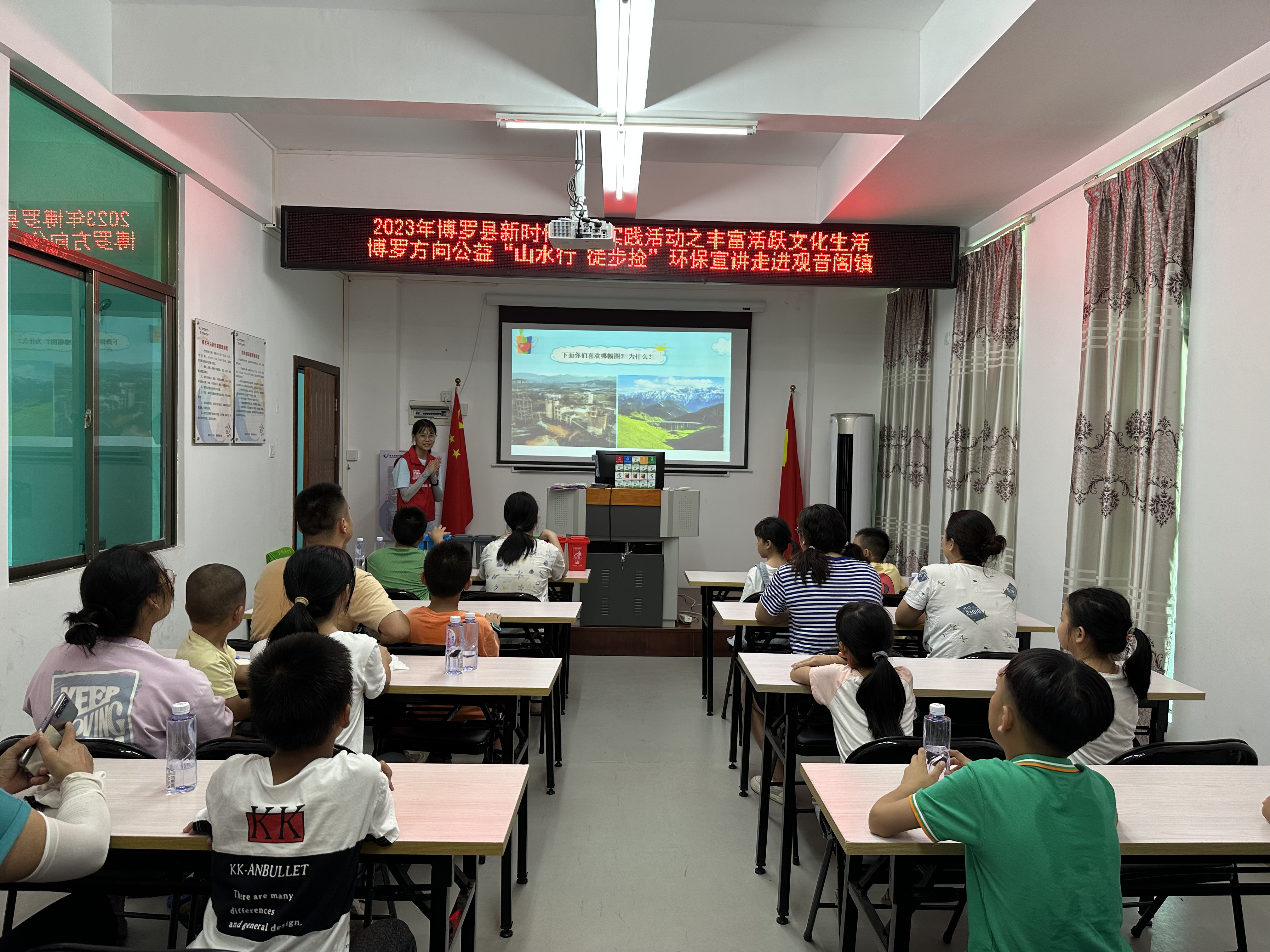 捡跑结束后,组织亲子志愿者到观音阁镇乡村少年宫开展环保宣讲活动,方向公益协会的志愿者通过PPT方式,详细讲解垃圾不落地、垃圾分类标识及垃圾定点投放在日常生活中的意义,并结合趣味游戏与孩子们交流互动,学习垃圾正确投放知识。活动现场气氛热烈,孩子们认真听讲,踊跃举手,积极回答问题,参与游戏互动。