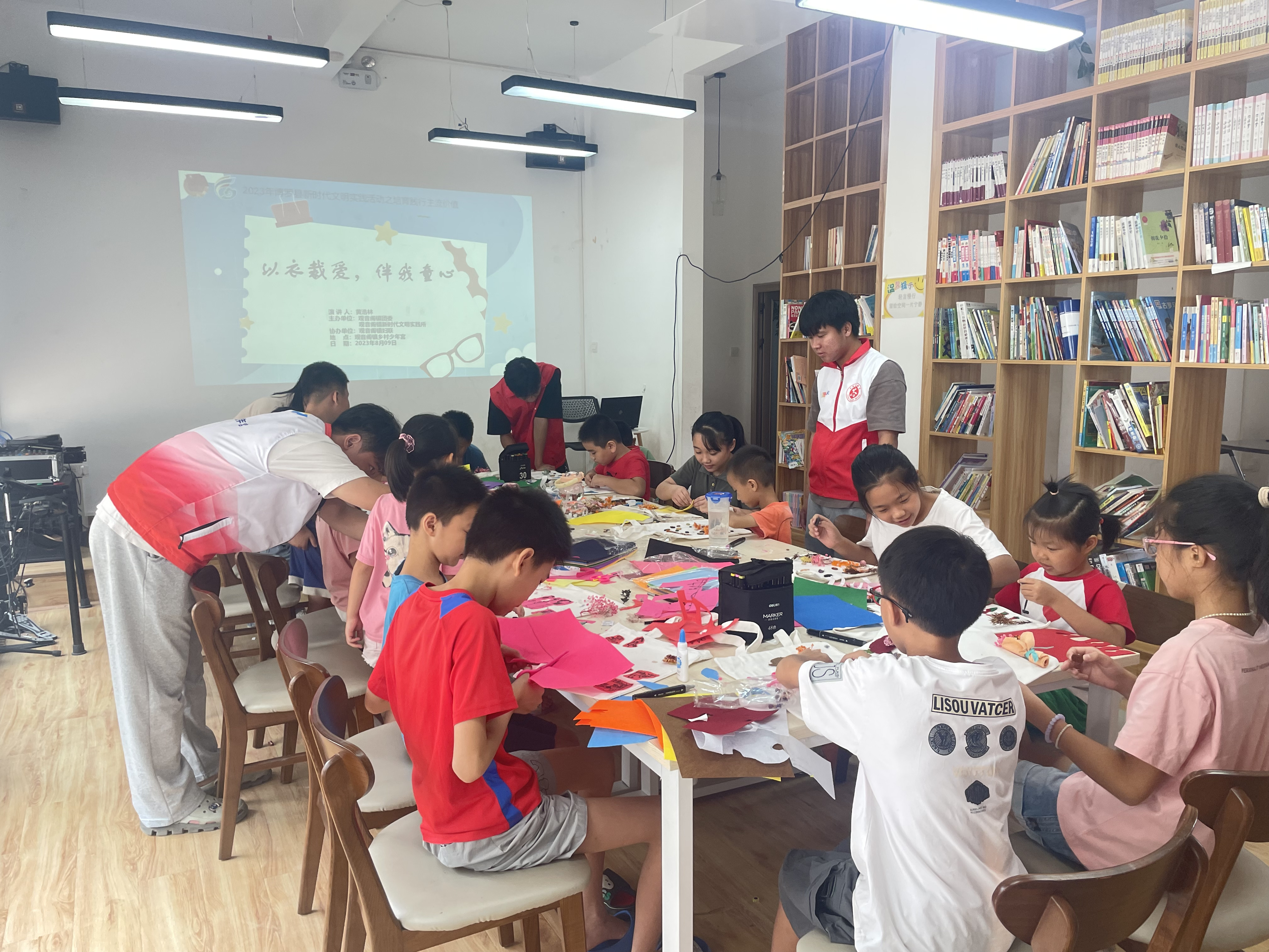 活动现场,志愿者在动手制作前耐心跟大家讲解制作步骤和注意事项,并鼓励孩子们发挥个人的巧思与想象力,接着志愿者让孩子们挑选自己喜欢的图案和装饰品,添加自己的创意,对图案进行裁剪、拼贴。