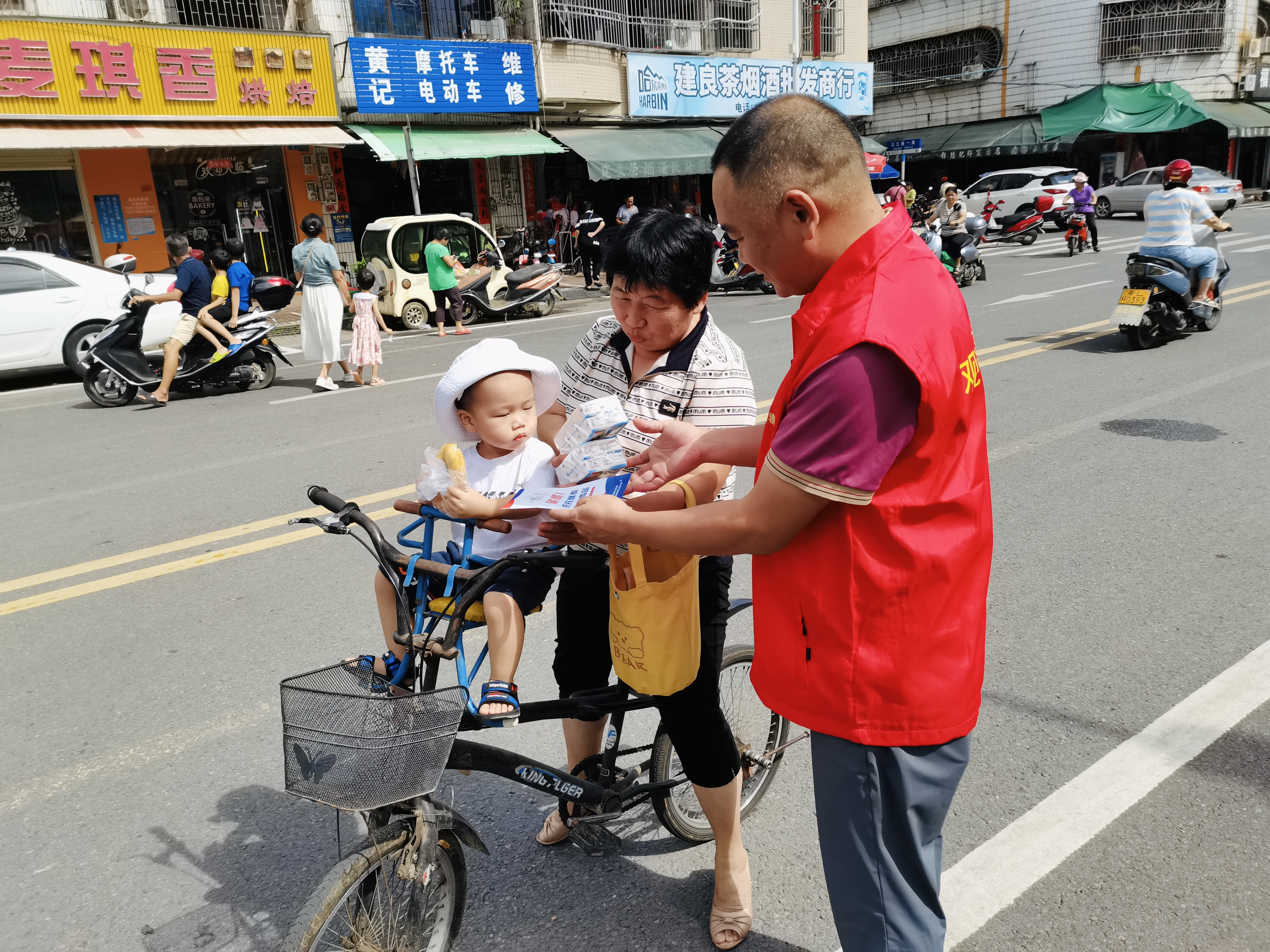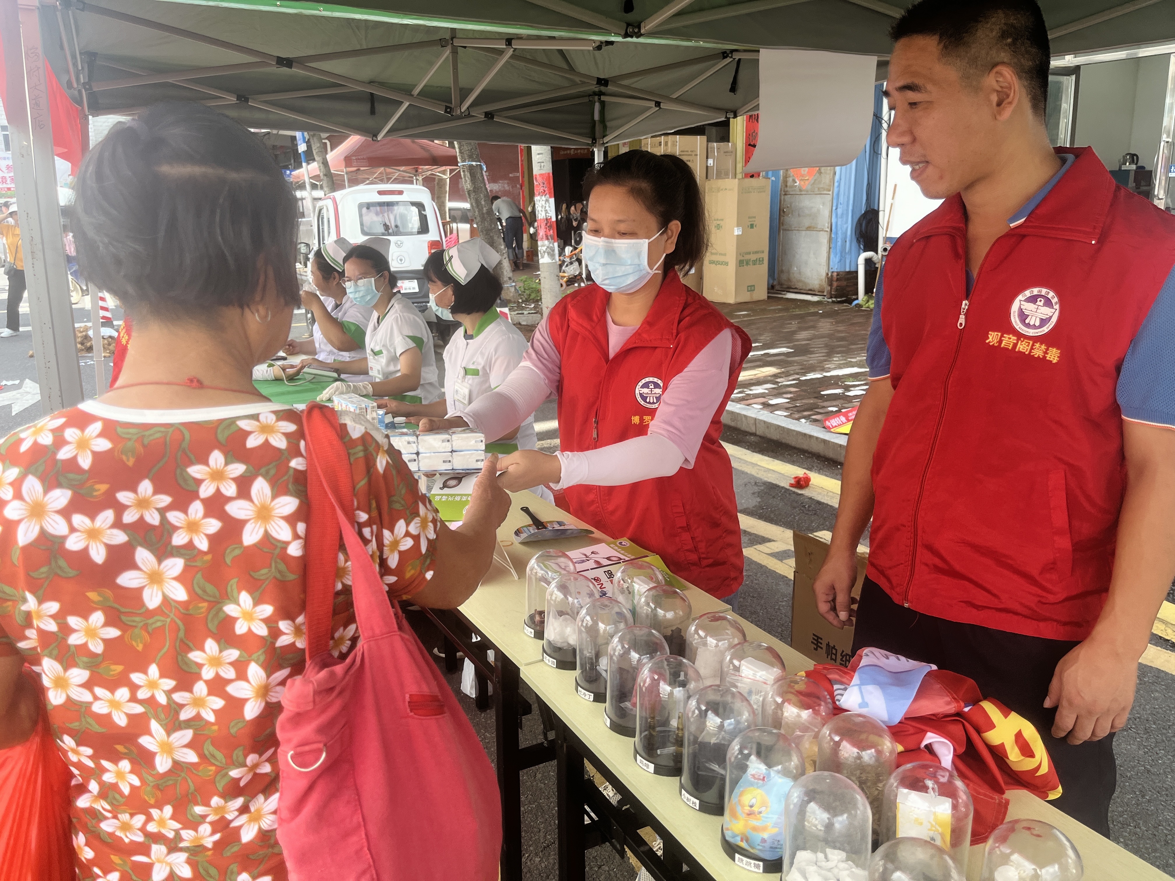 活动现场,禁毒工作人员通过设立咨询台、悬挂禁毒宣传横幅、摆放禁毒仿真品、派发宣传资料和小礼品等方式,向过往群众和周边商户讲解毒品的种类、毒品的危害以及相关法律法规,强调毒品对个人、家庭和社会造成的严重危害,普及识别和防范新型毒品的方法;以及向群众重点科普“依托咪酯”的外观、滥用方式、吸食后的状态以及危害等知识,增强群众对此类麻醉药品的认识,提高大家对新型毒品及替代毒品的防范意识;另一方面向群众宣传电信诈骗的危害性以及甄别电信诈骗的方法和技巧,并揭露网络电信诈骗分子惯用的手法、设置的陷阱圈套等,提醒广大群众加强防骗意识。同时,大参林工作人员在旁设置了健康检测台,免费为群众进行了血压、血糖等方面的检测,并根据他们检查情况提出健康知识建议,嘱咐他们要养成良好的行为习惯和生活方式。